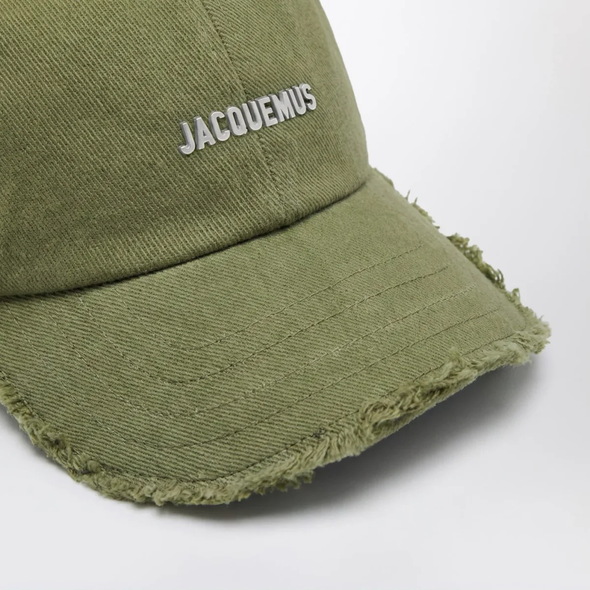 Cappello da baseball di Jacquemus in cotone color kaki• Coulisse regolabile• Visiera con bordo sfrangiato• Dettaglio logo frontale in metallo• Cinturino regolabile sul retro