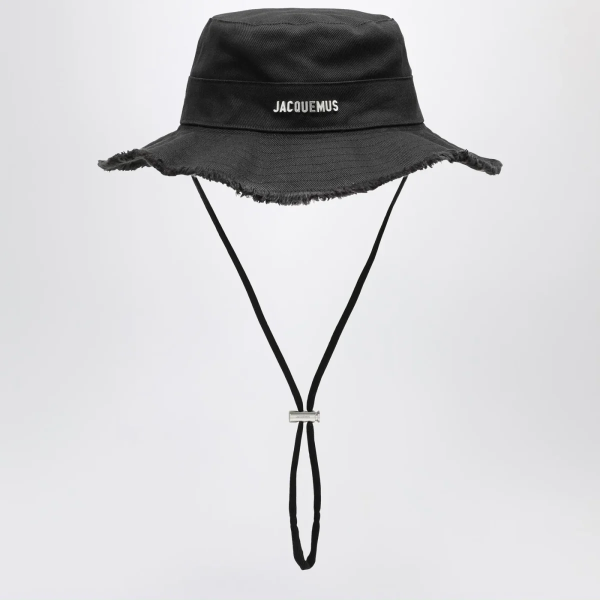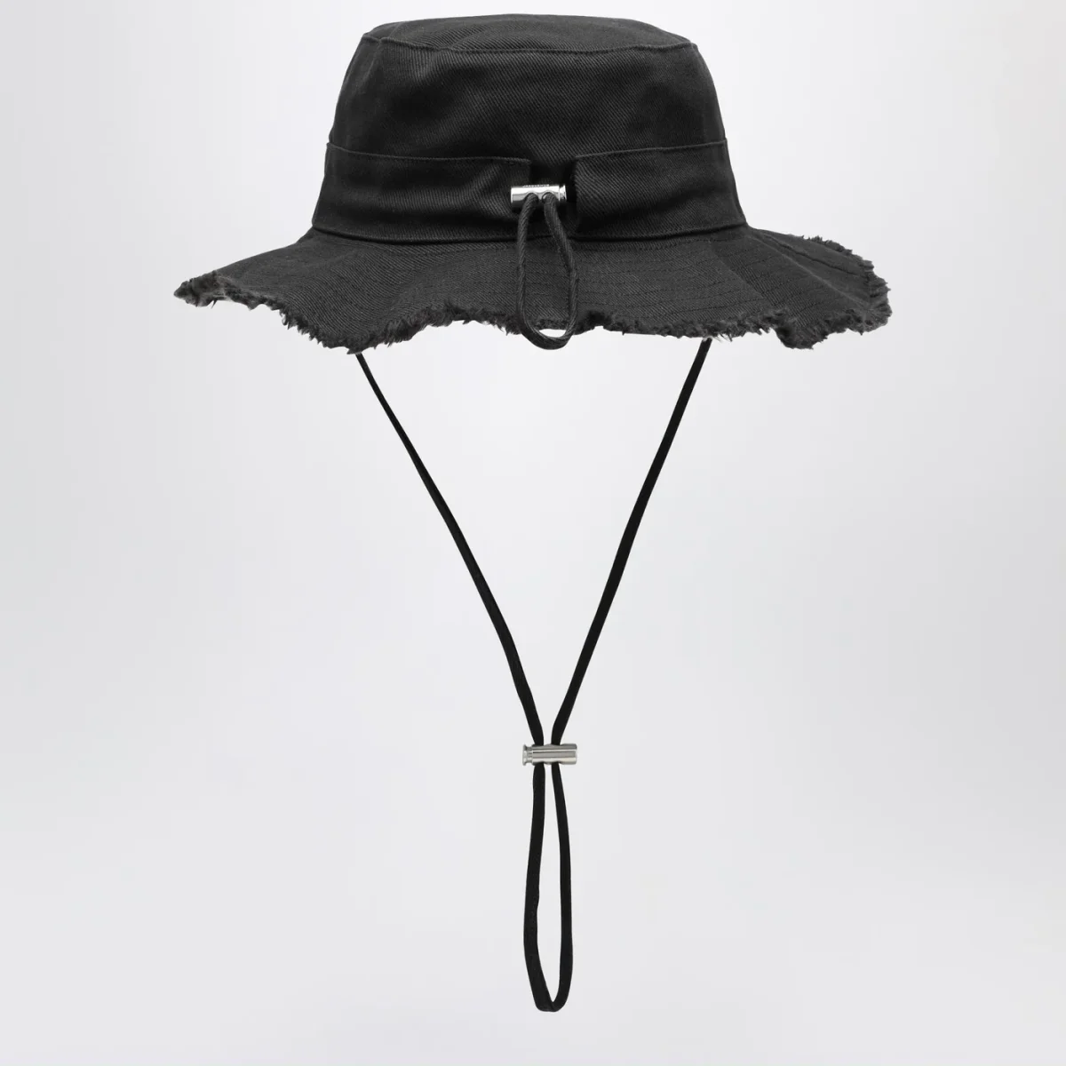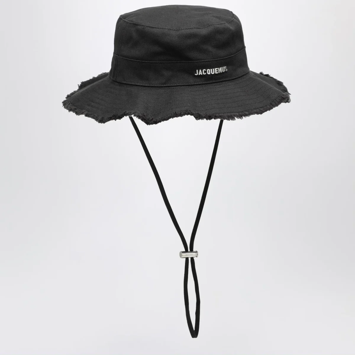 Cappello di Jacquemus in cotone nero• coulisse regolabile• dettaglio logo frontale in metallo• piccole frange sul bordo