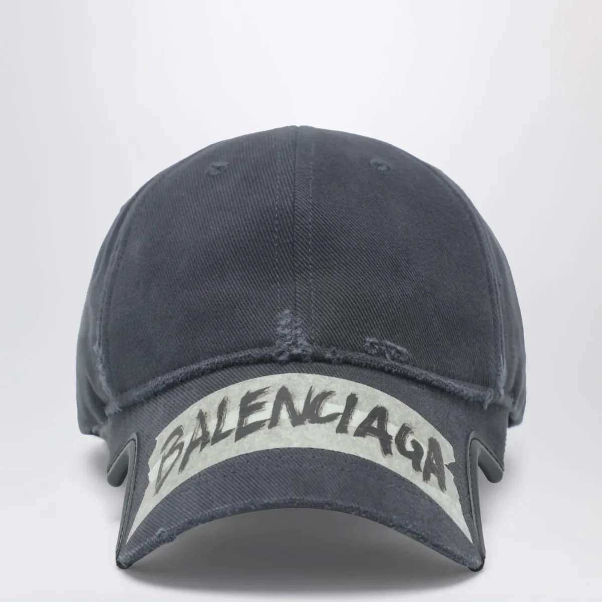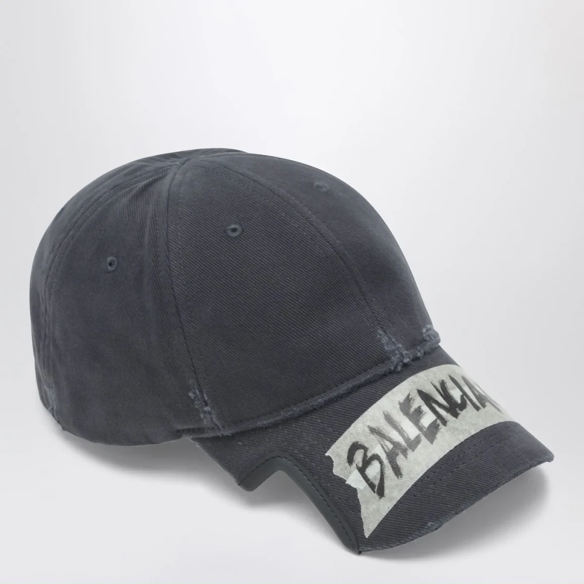 Cappello di Balenciaga in drill di cotone nero slavato• occhielli di areazione ricamati sulla parte superiore• linguetta regolabile con chiusura a strappo sul retro• visiera cut-out su entrambi i lati• motivo masking tape sul davanti