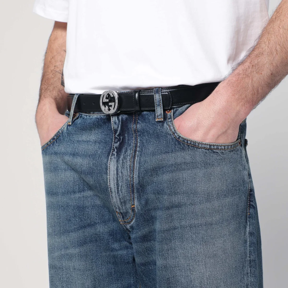 Cintura con fibbia Incrocio GG incisa