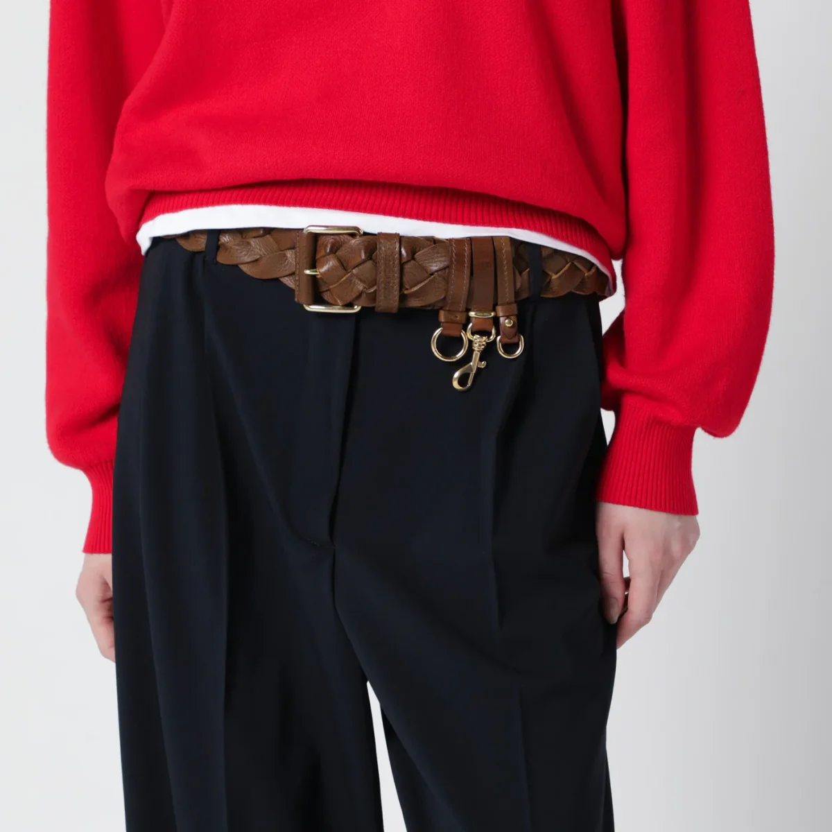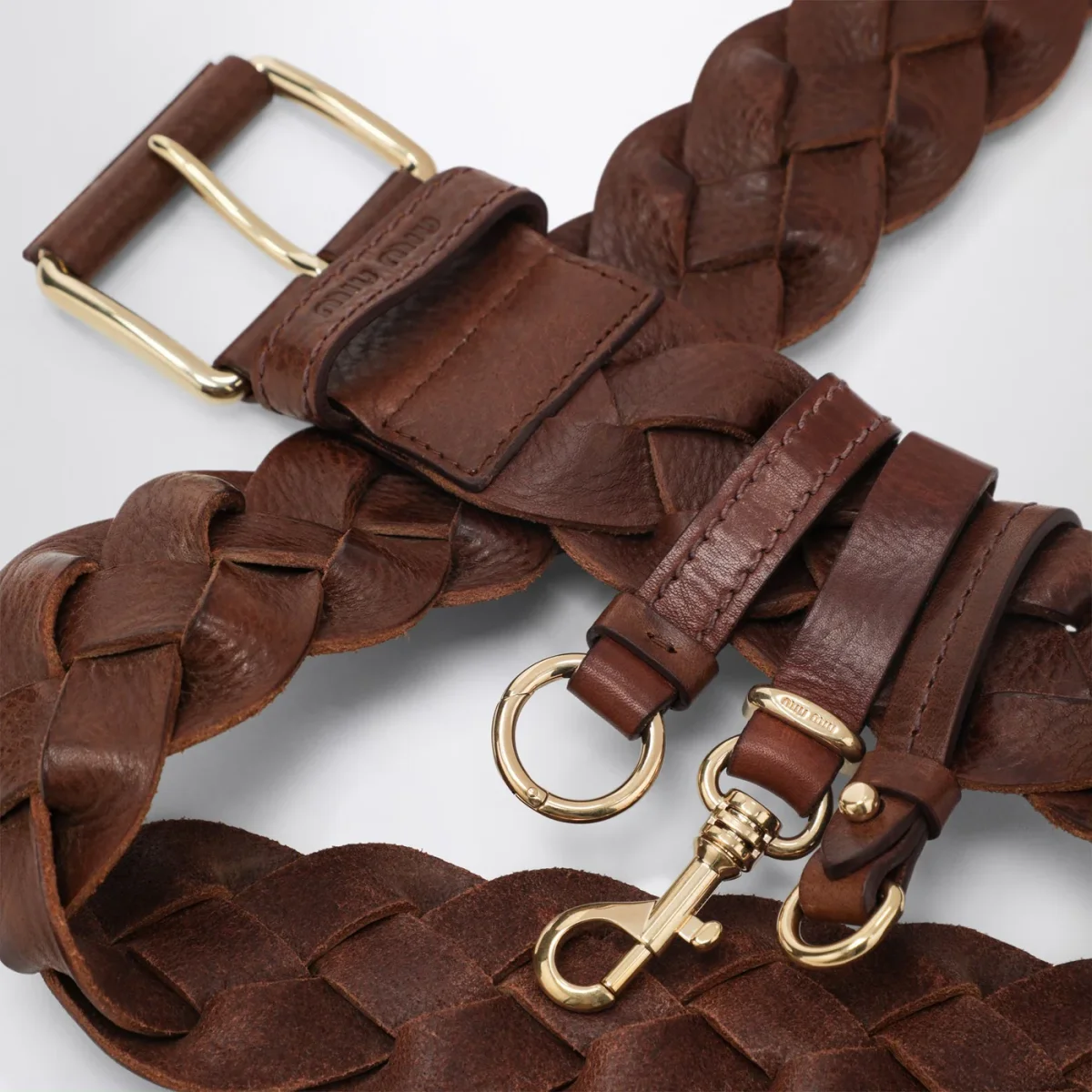 Cintura di Miu Miu in cuoio marrone con lavorazione intrecciata