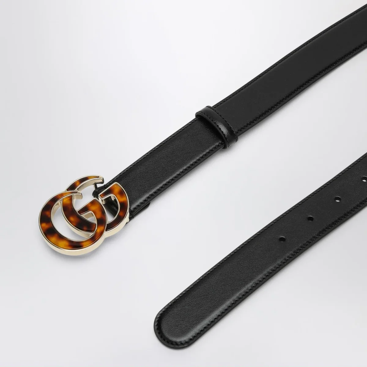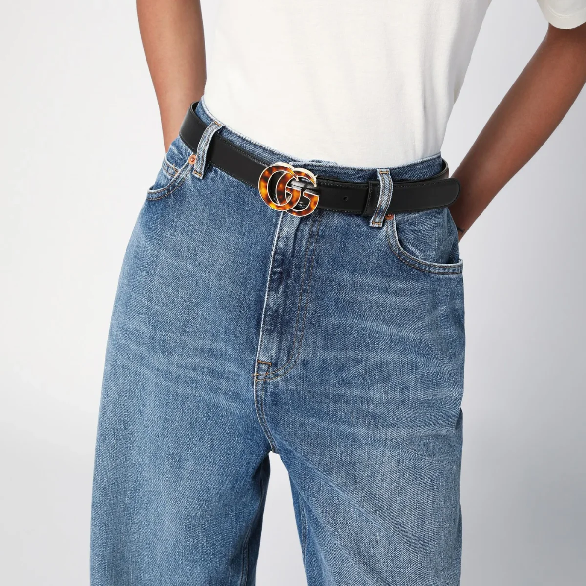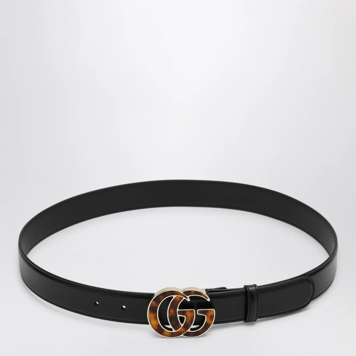 Cintura nera con GG in plexiglas tartarugato