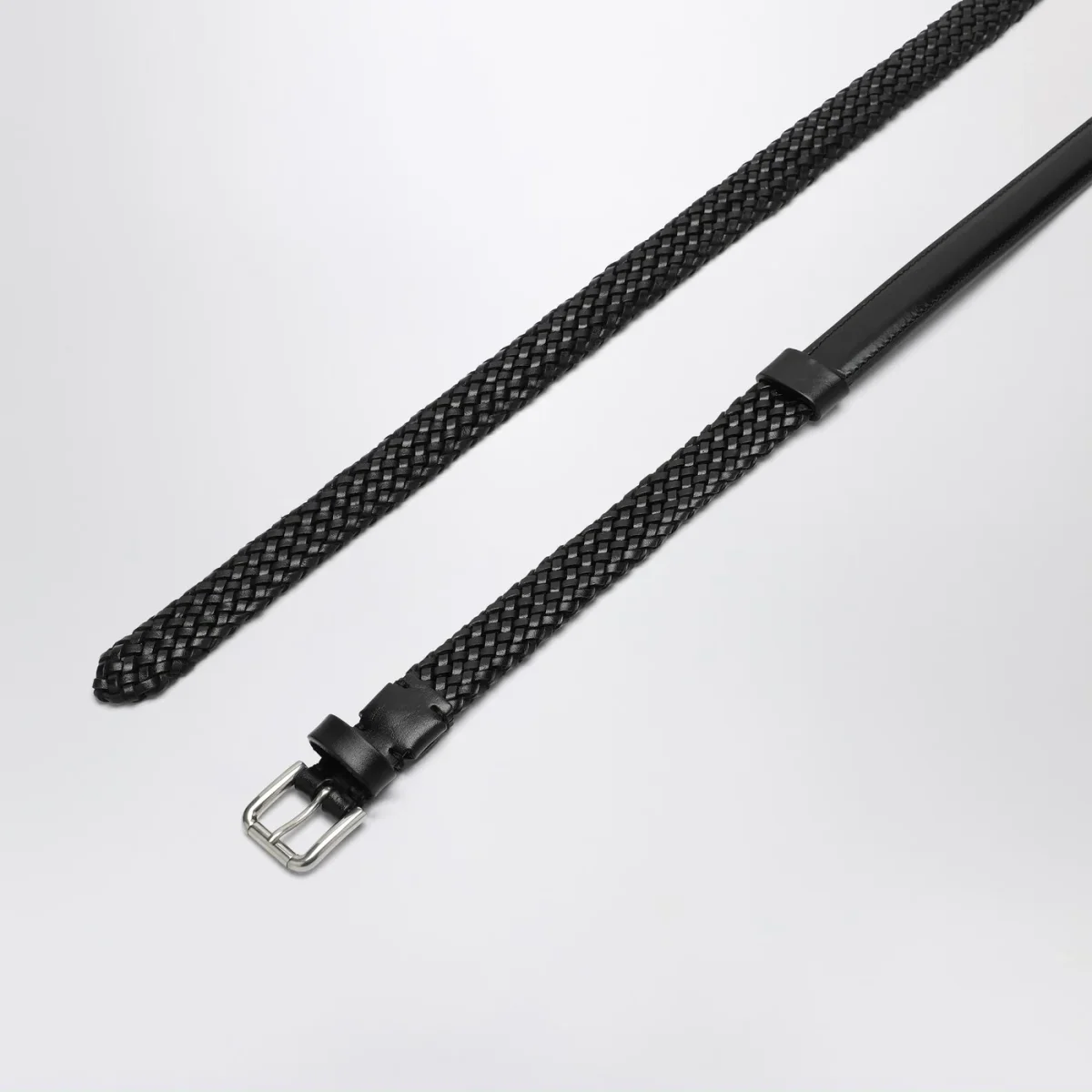 Cintura nera in pelle intrecciata