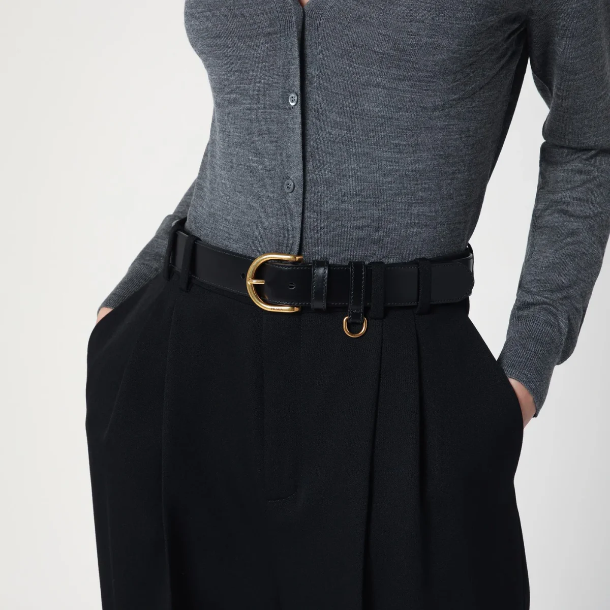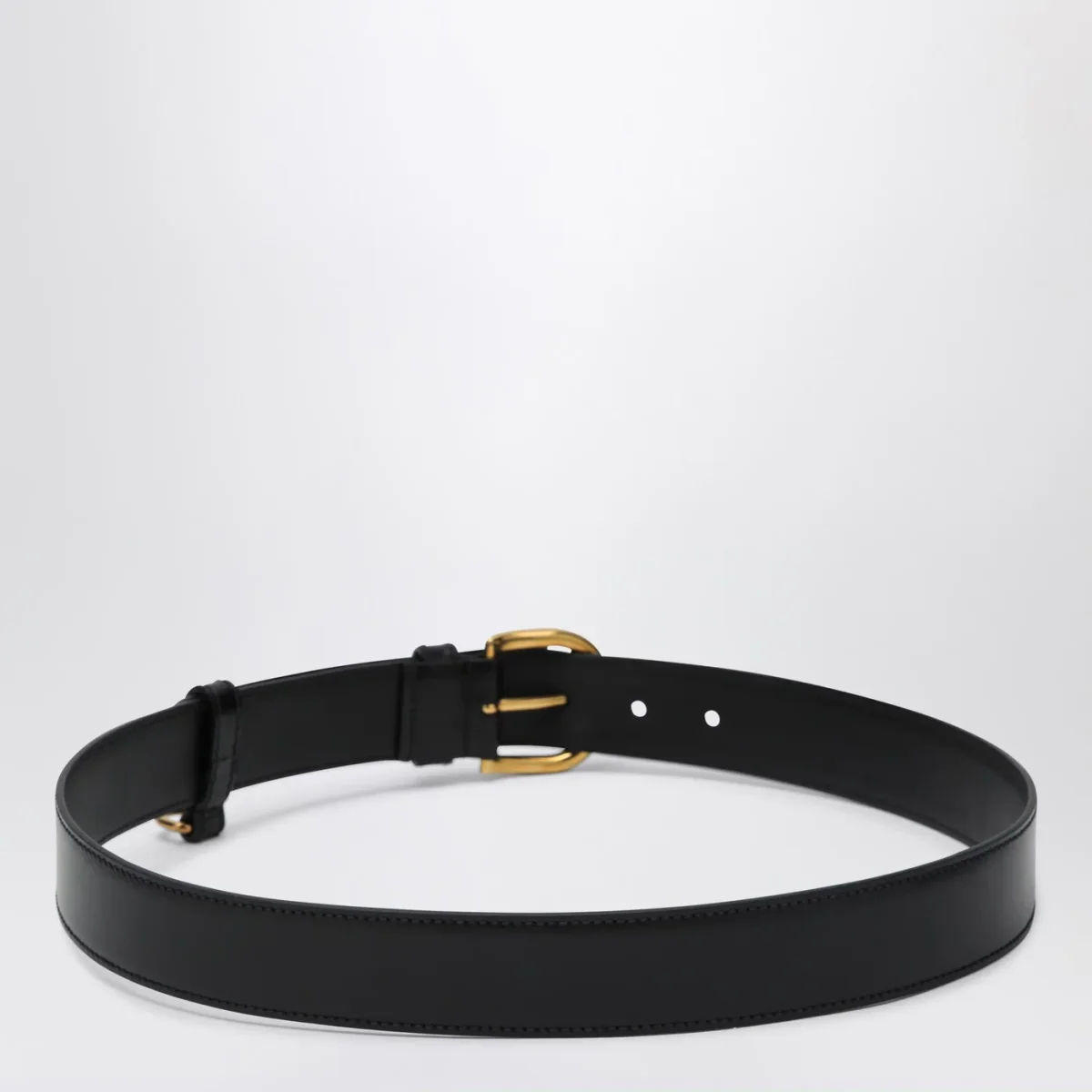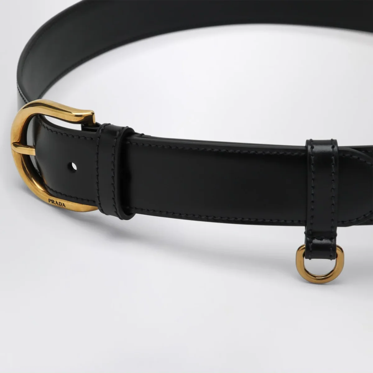 Cintura di Prada in pelle nera, caratterizzata da fibbia in metallo con logo inciso e passante con dettaglio con occhiello.