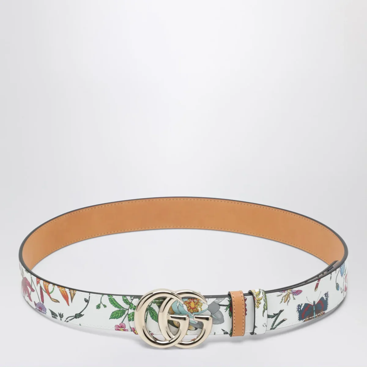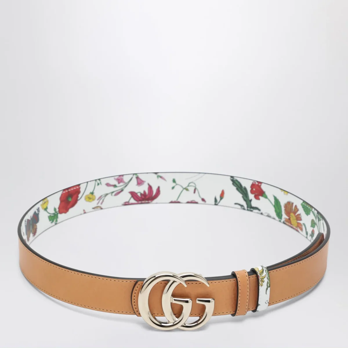 Cintura reversibile GG Marmont marrone/bianca con stampa Flora