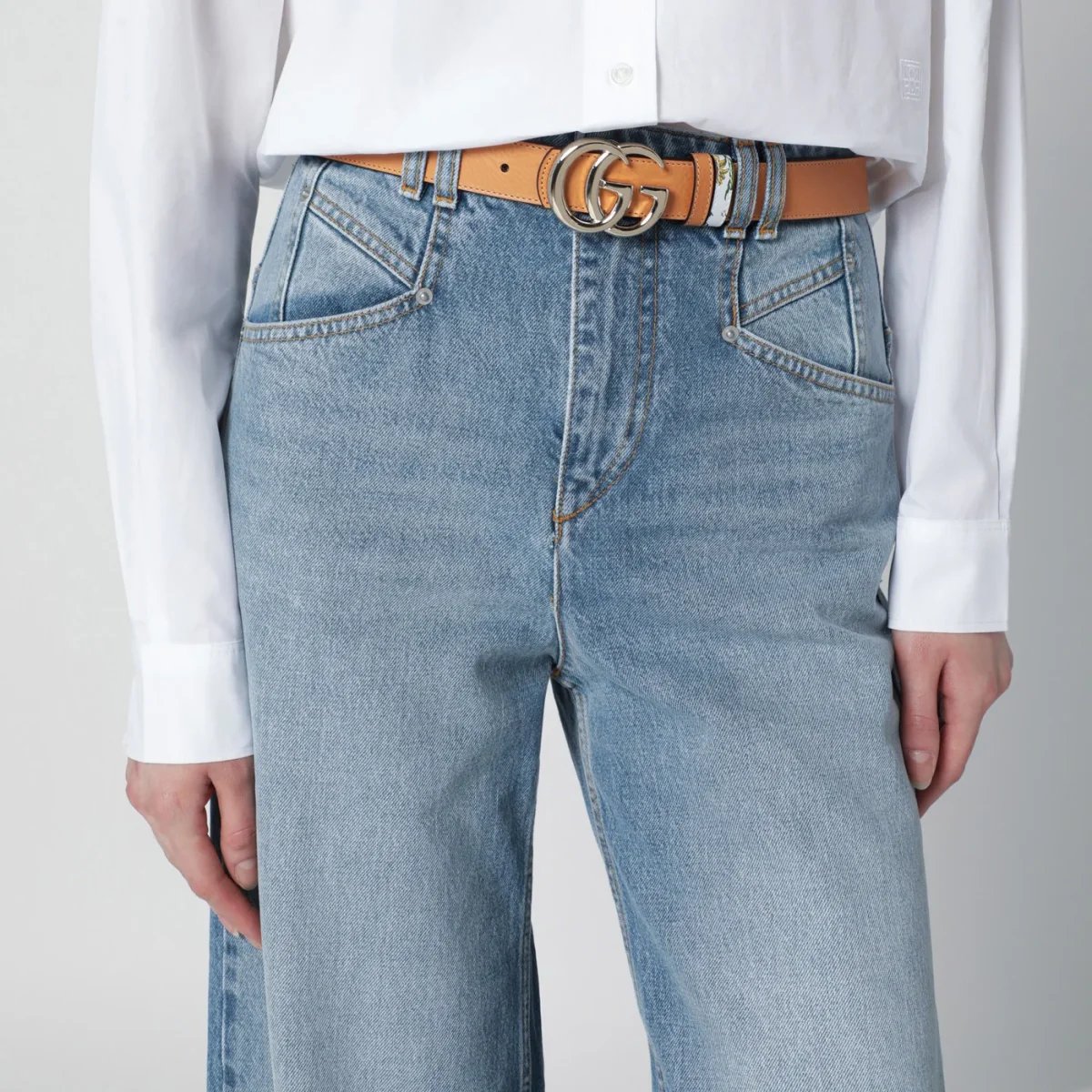 Cintura reversibile di Gucci in pelle marrone chiara su un lato