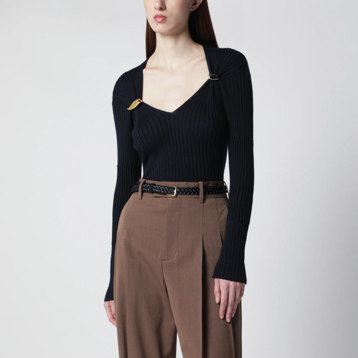 Cintura in pelle di vitello di Bottega Veneta• Colore: Nero• Lavorazione Intreccio• Fibbia in metallo• Chiusura con rebbio• Accessori metallici con finitura in ottone