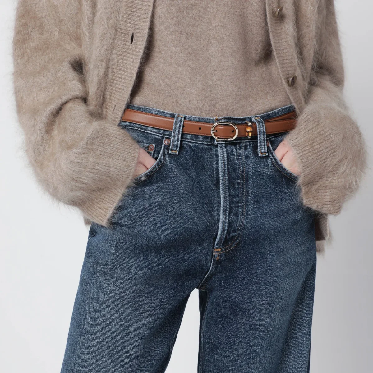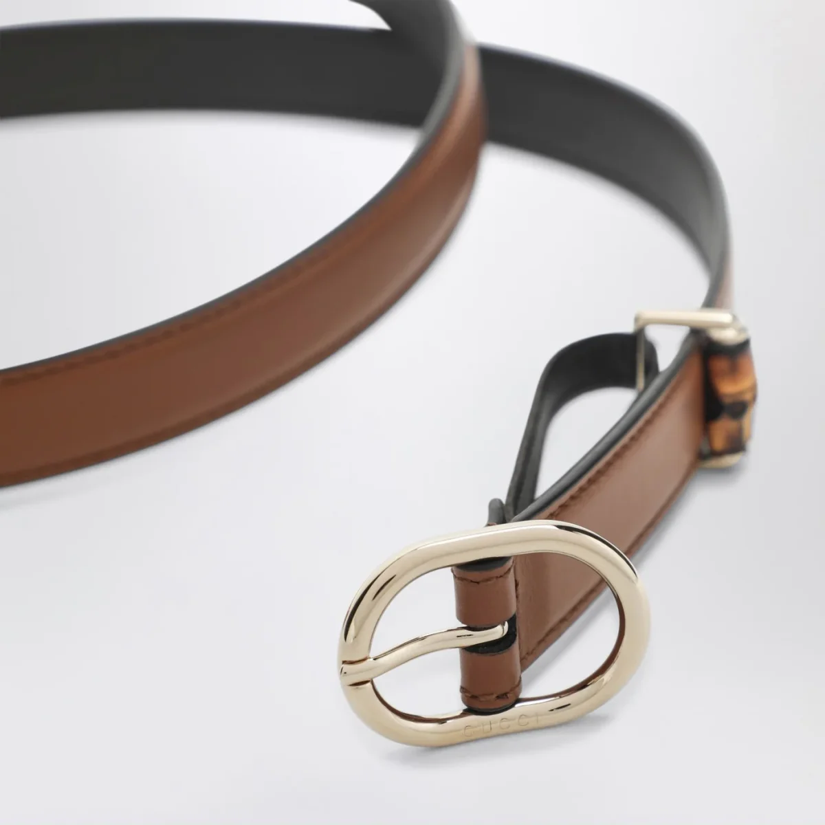 Cintura sottile di Gucci in pelle liscia marrone• dettaglio in bambù• incisione logo Gucci• fibbia ovale• hardware color oro chiaro