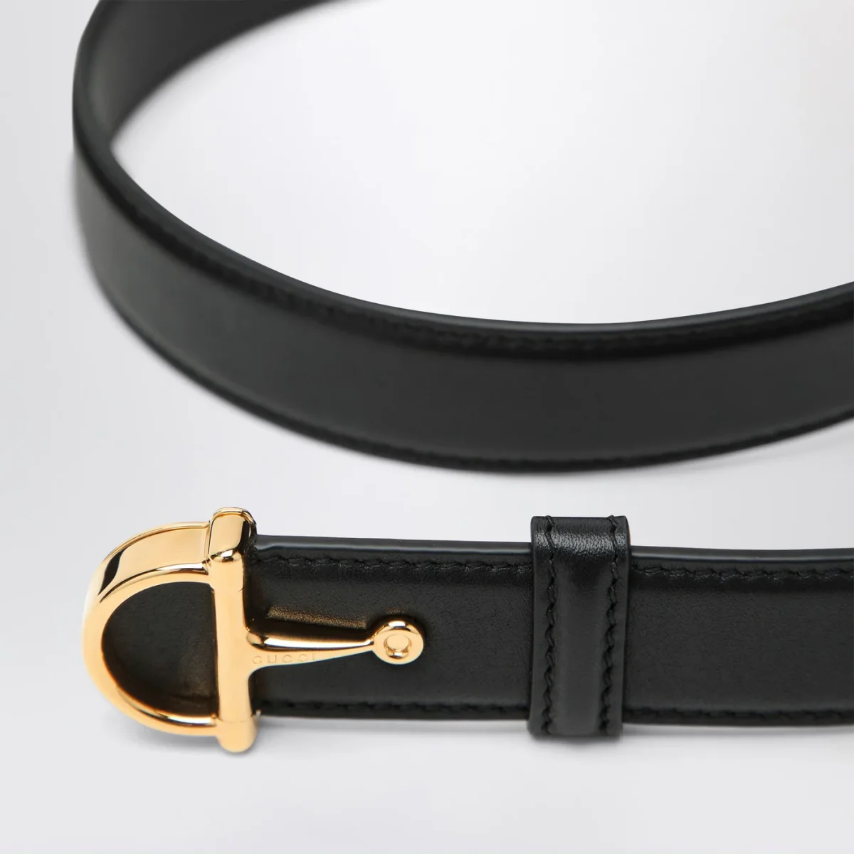Cintura di Gucci in pelle nera, caratterizzata da chiusura con fibbia con mezzo Morsetto color oro.