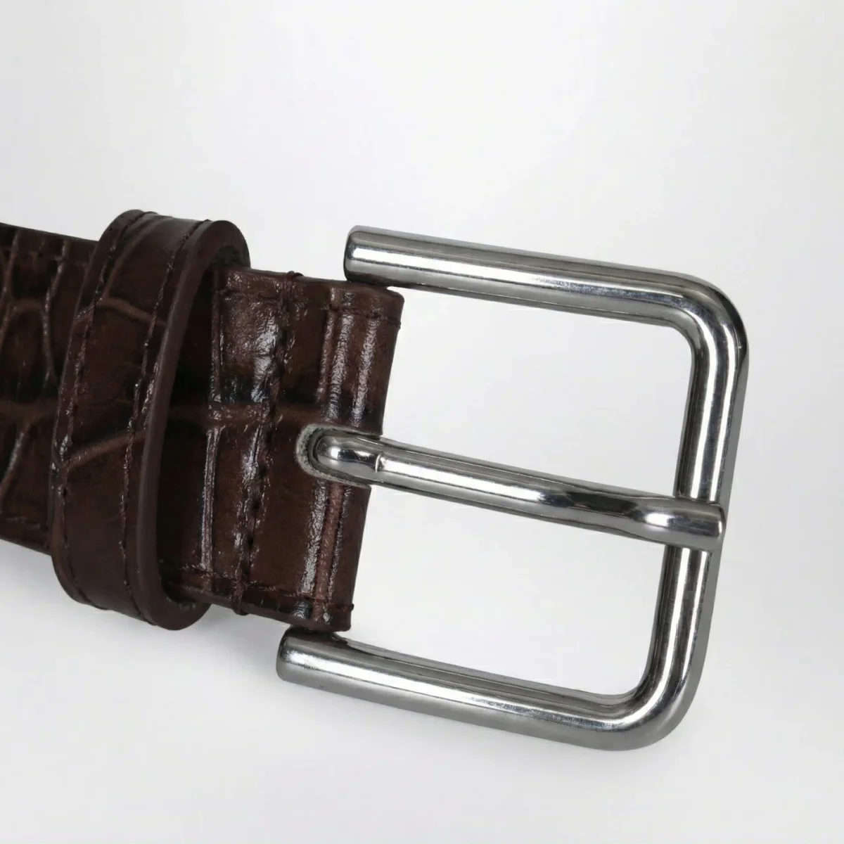 Cintura di The Frankie Shop in pelle di vitello con stampa cocco con chiusura con fibbia in metallo color argento.