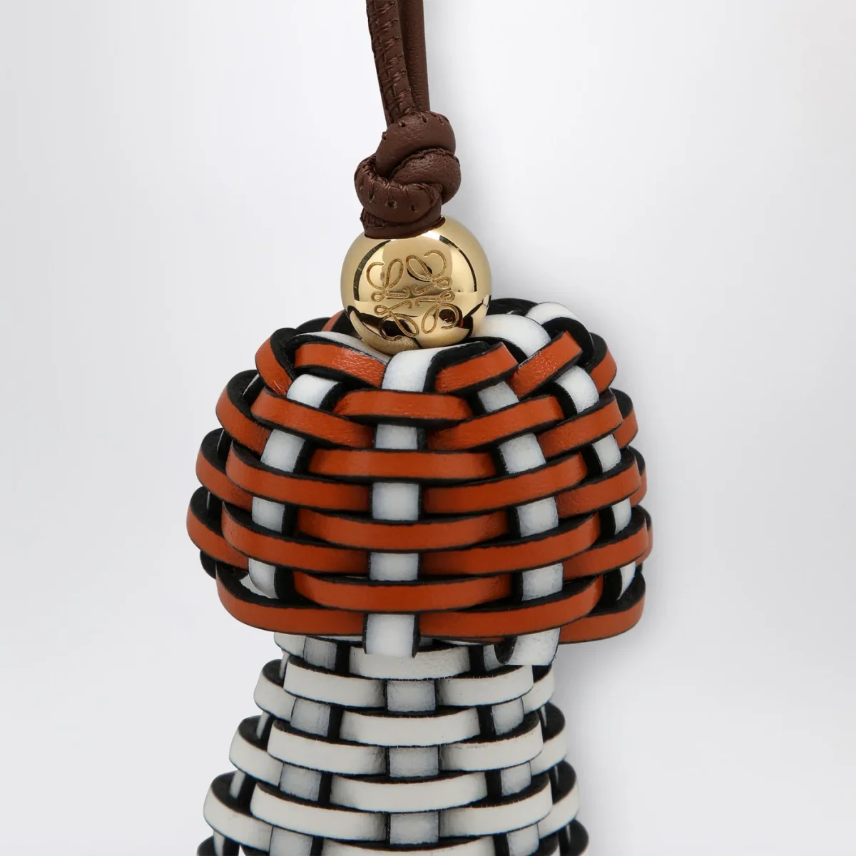 Ciondolo a forma di fungo di Loewe della capsule Suna Fujita in pelle intrecciata• Cinturino tubolare ad anello• Dettaglio Anagram Pebble