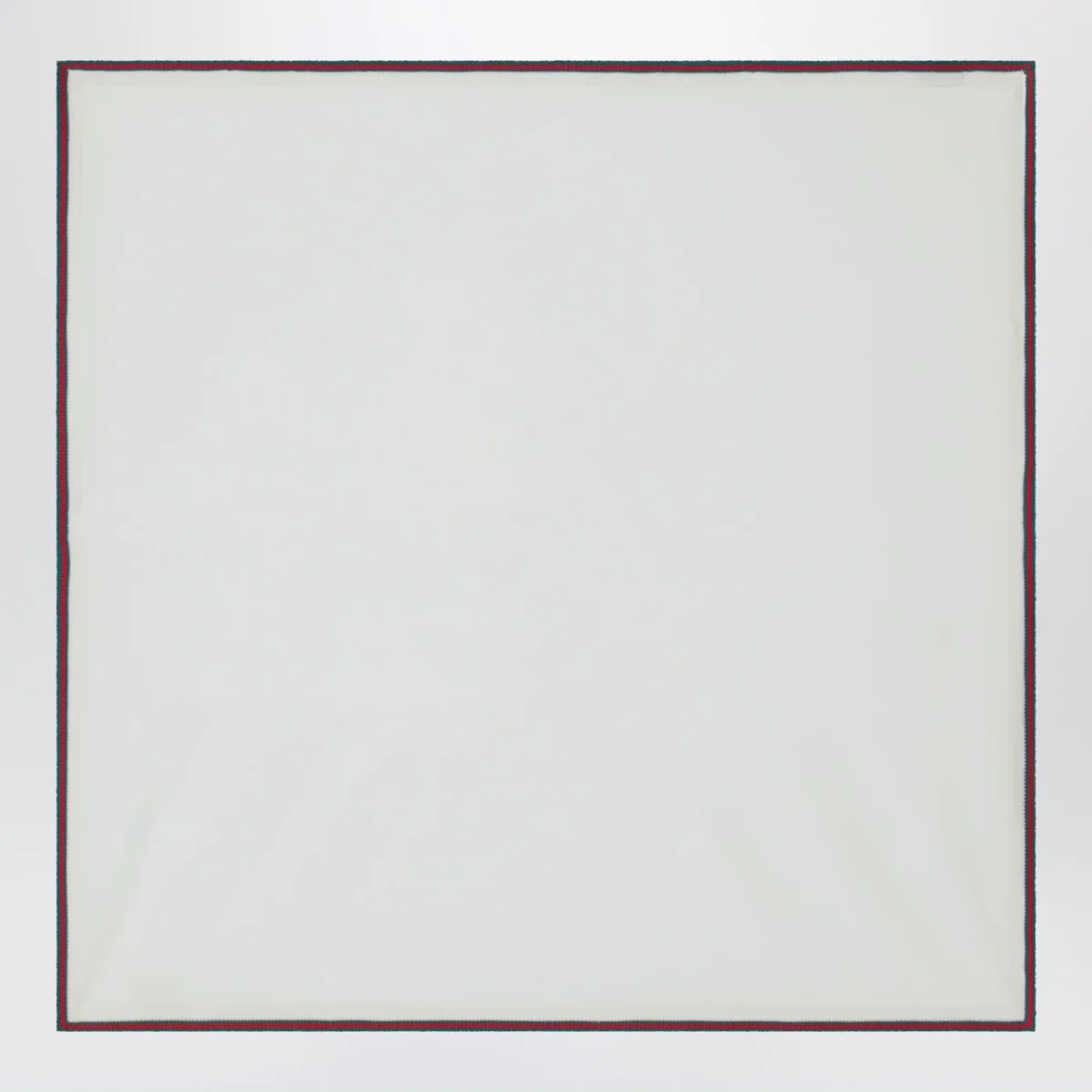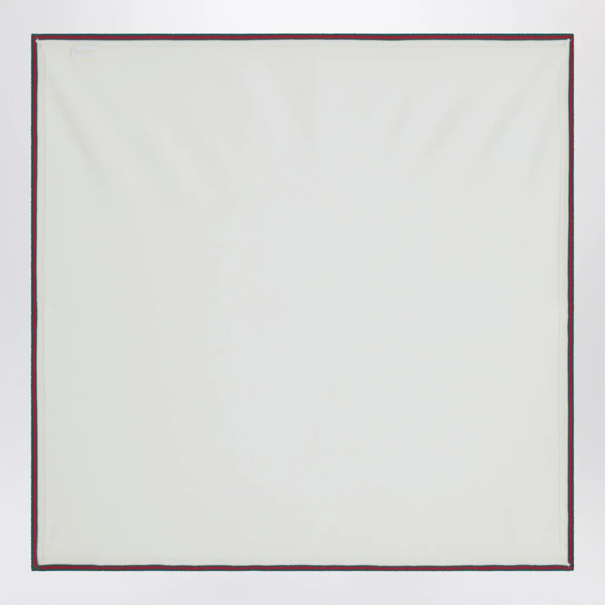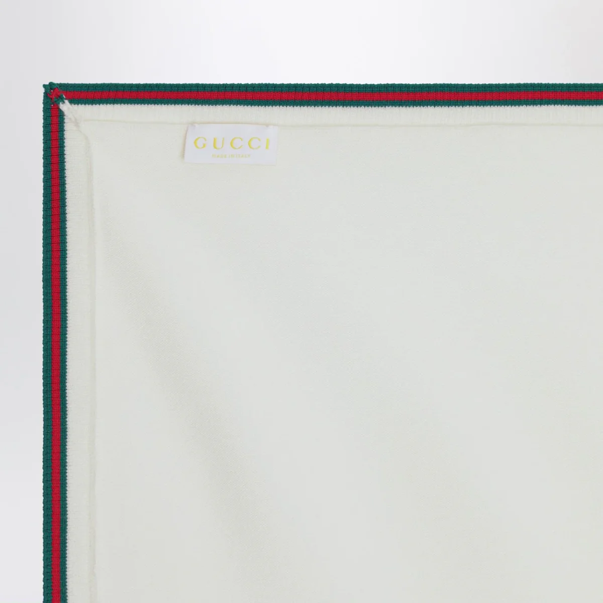 Coperta di Gucci in lana bianca con bordi a costine con nastro Web verde/rosso/verde.