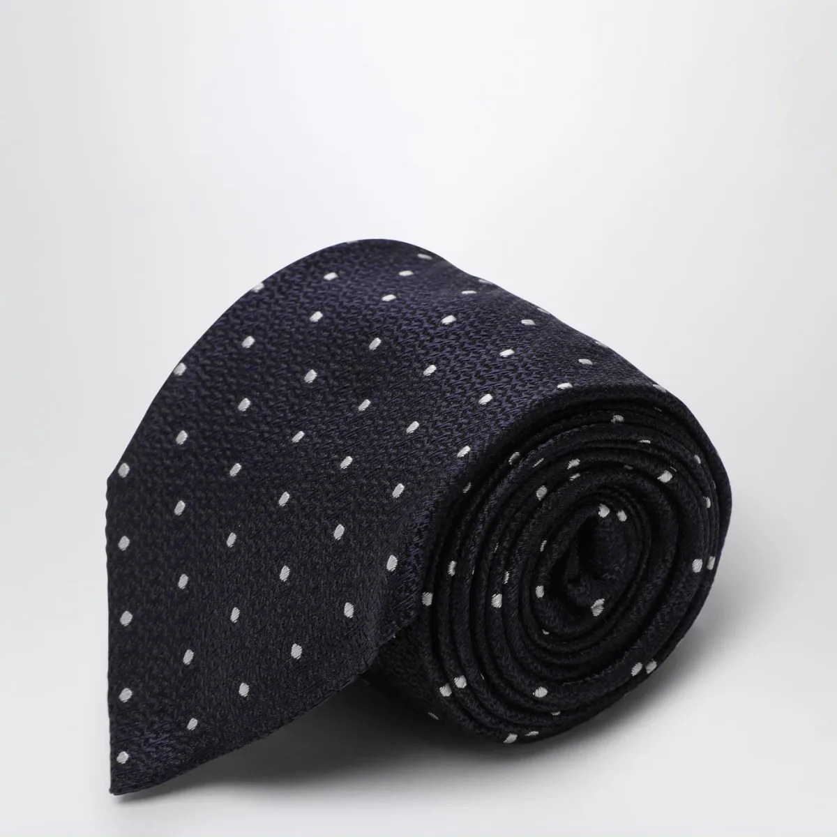 Cravatta a pois blu/bianca in seta