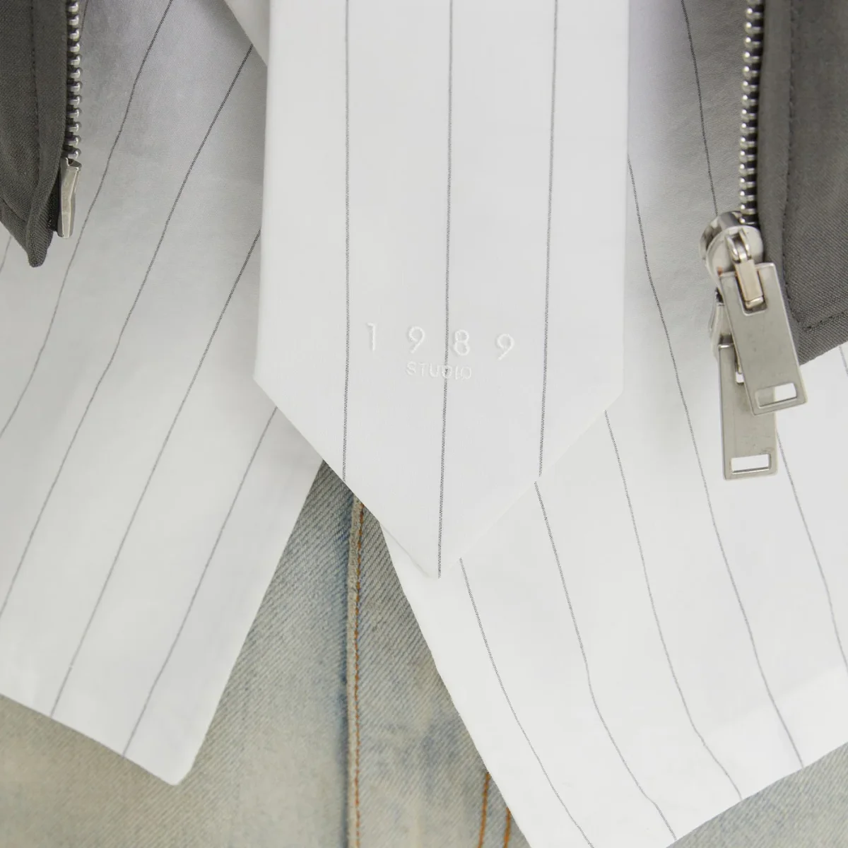 Cravatta in popeline di 1989 Studio con motivo a righe e etichetta con logo all’interno.