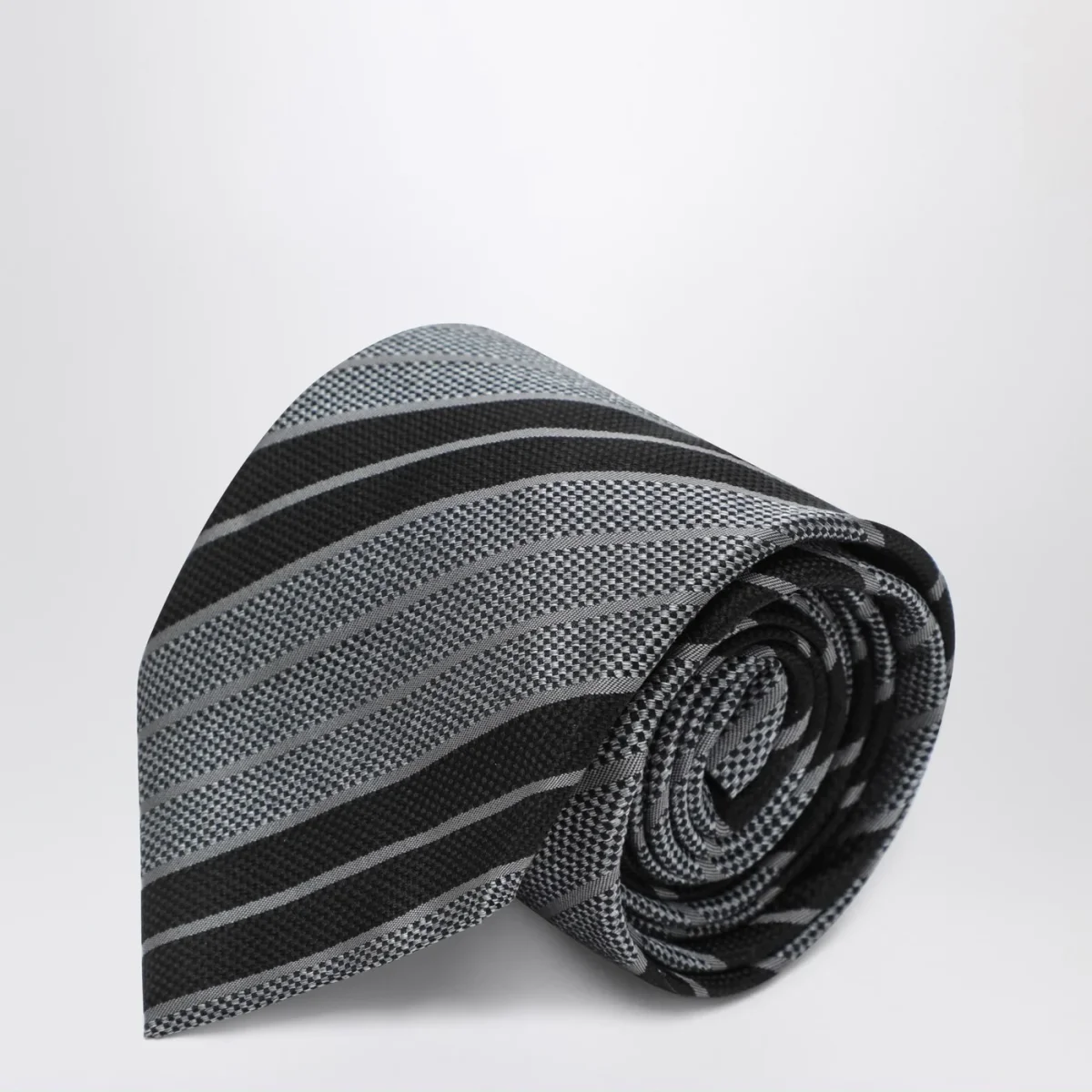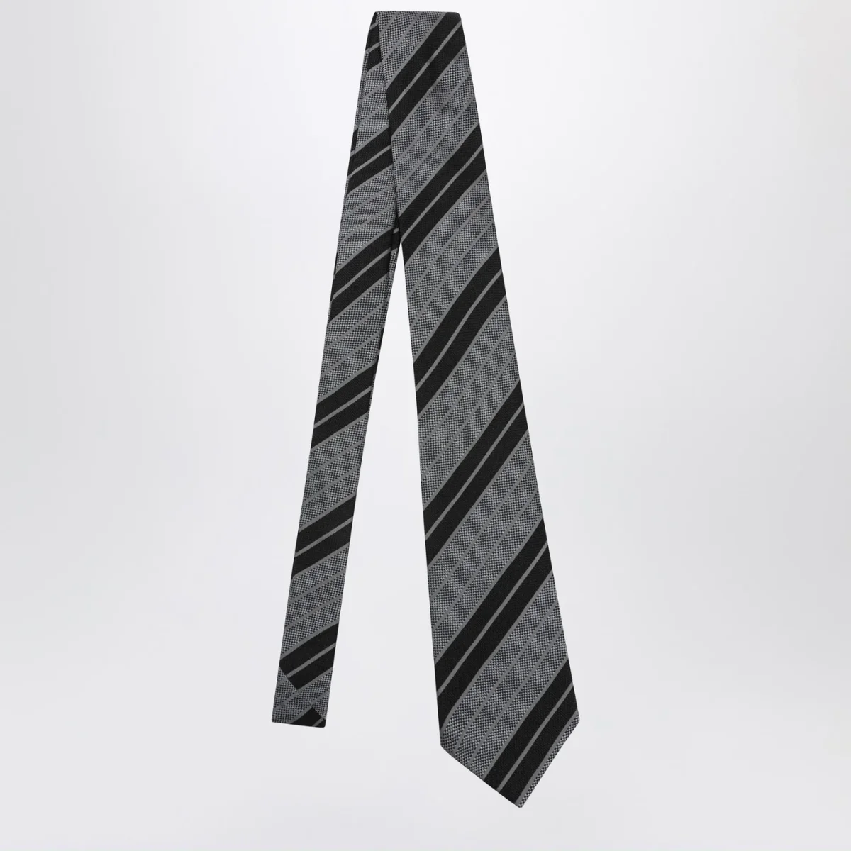 Cravatta in seta a righe nere/grigie