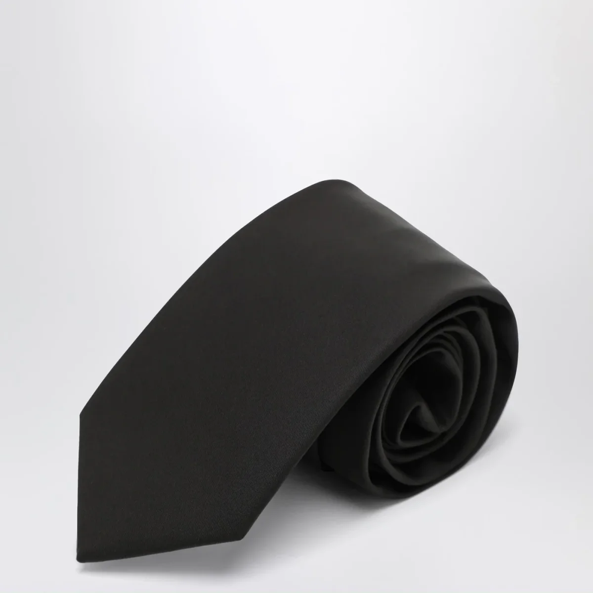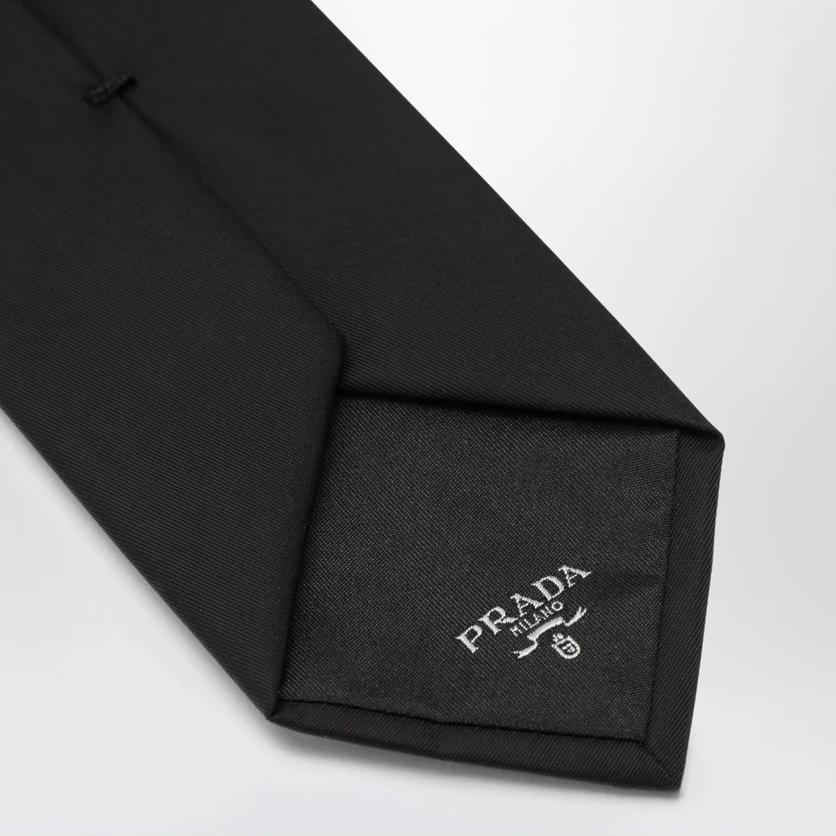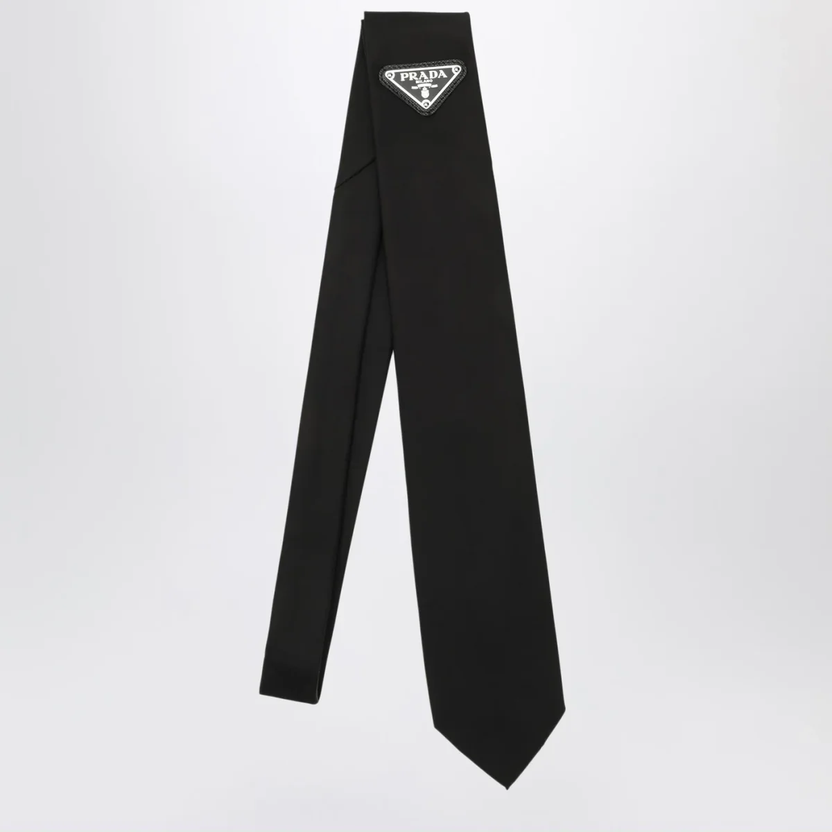 Cravatta di Prada in gabardine Re-Nylon nera• triangolo logo in metallo smaltato sul davanti