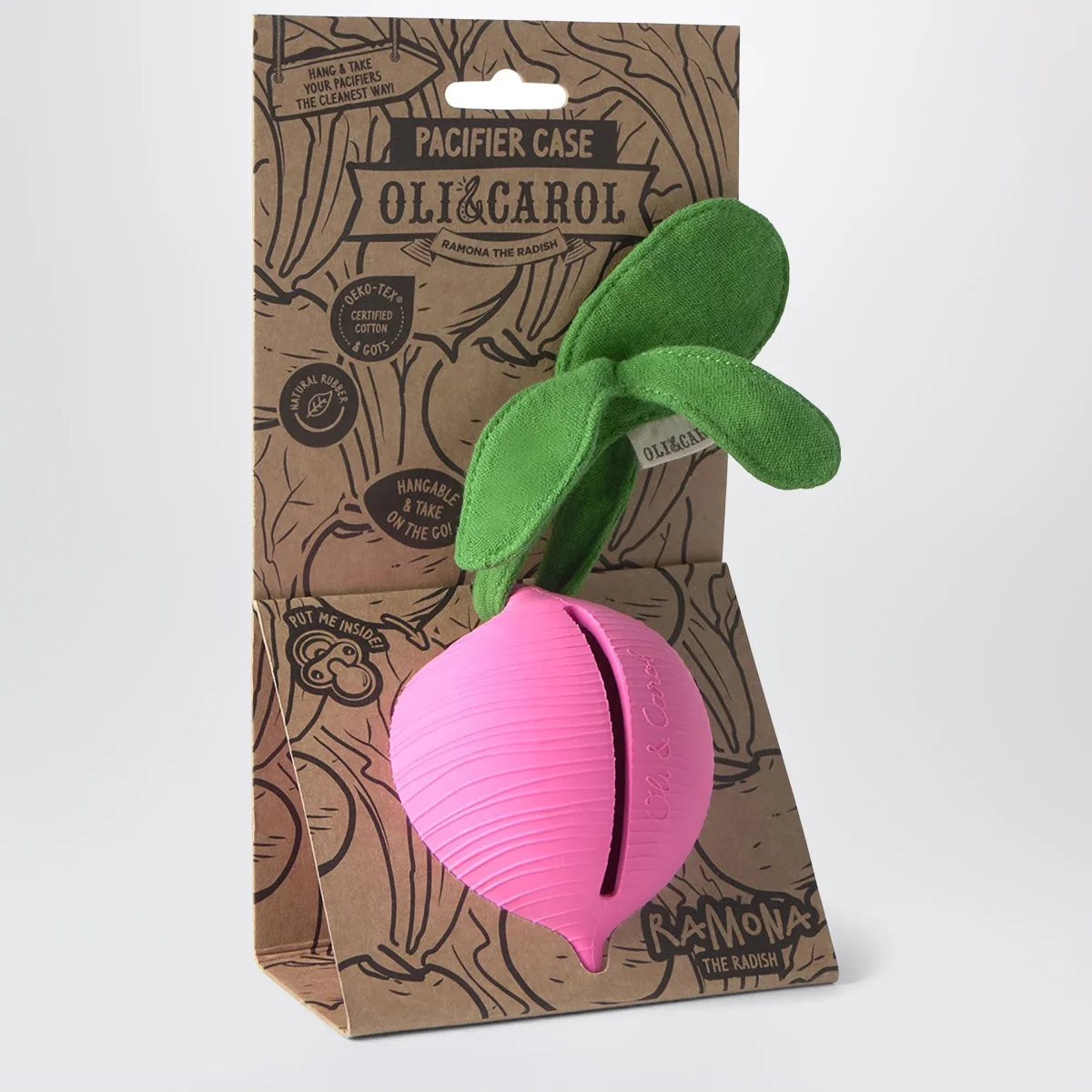 Custodia per ciuccio a forma di ravanello di Oli&Carol in gomma naturale