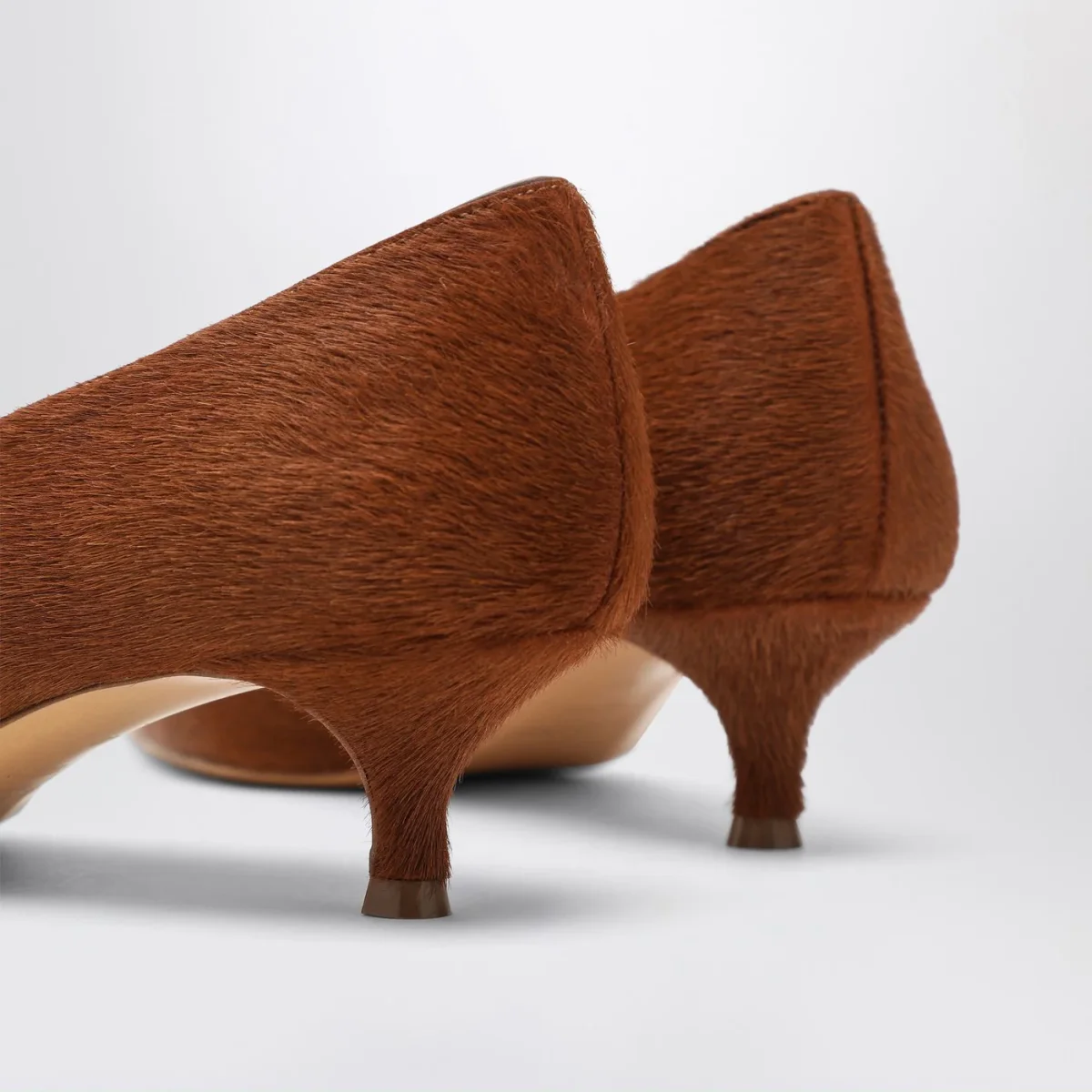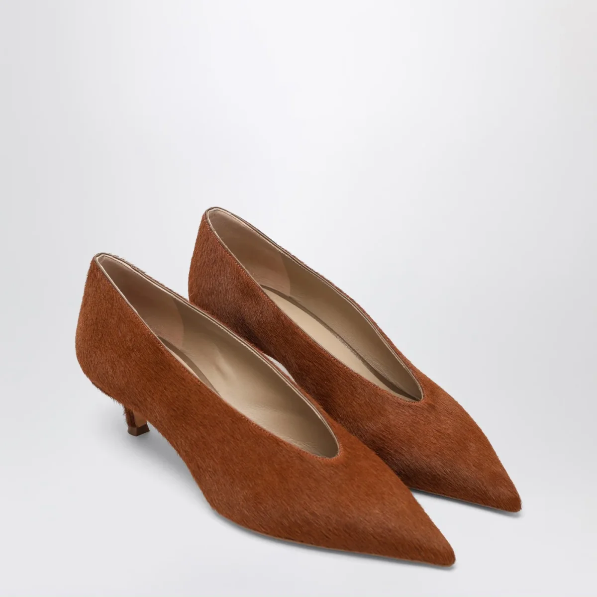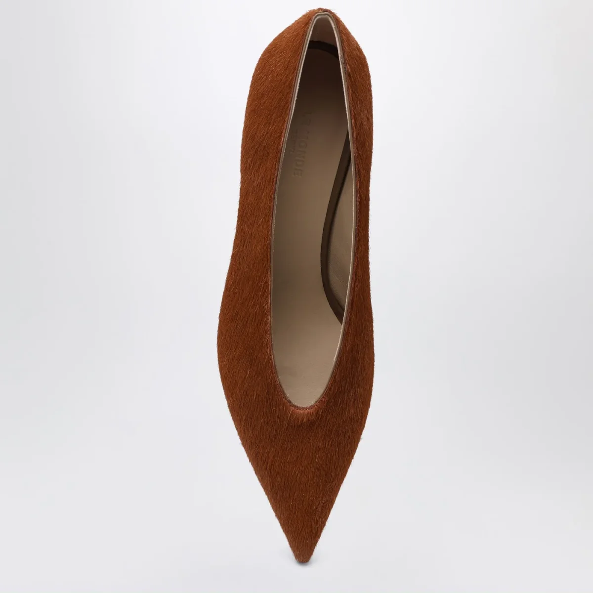 Décolleté di Le Monde Béryl effetto cavallino color nocciola, caratterizzata da design a punta, tacco basso e suola in cuoio.