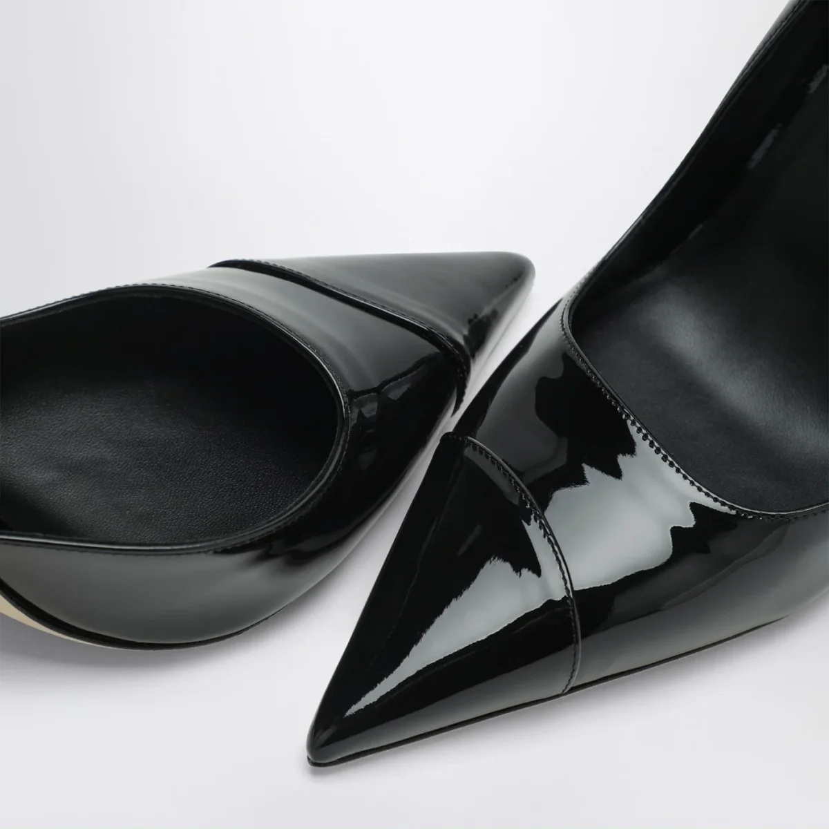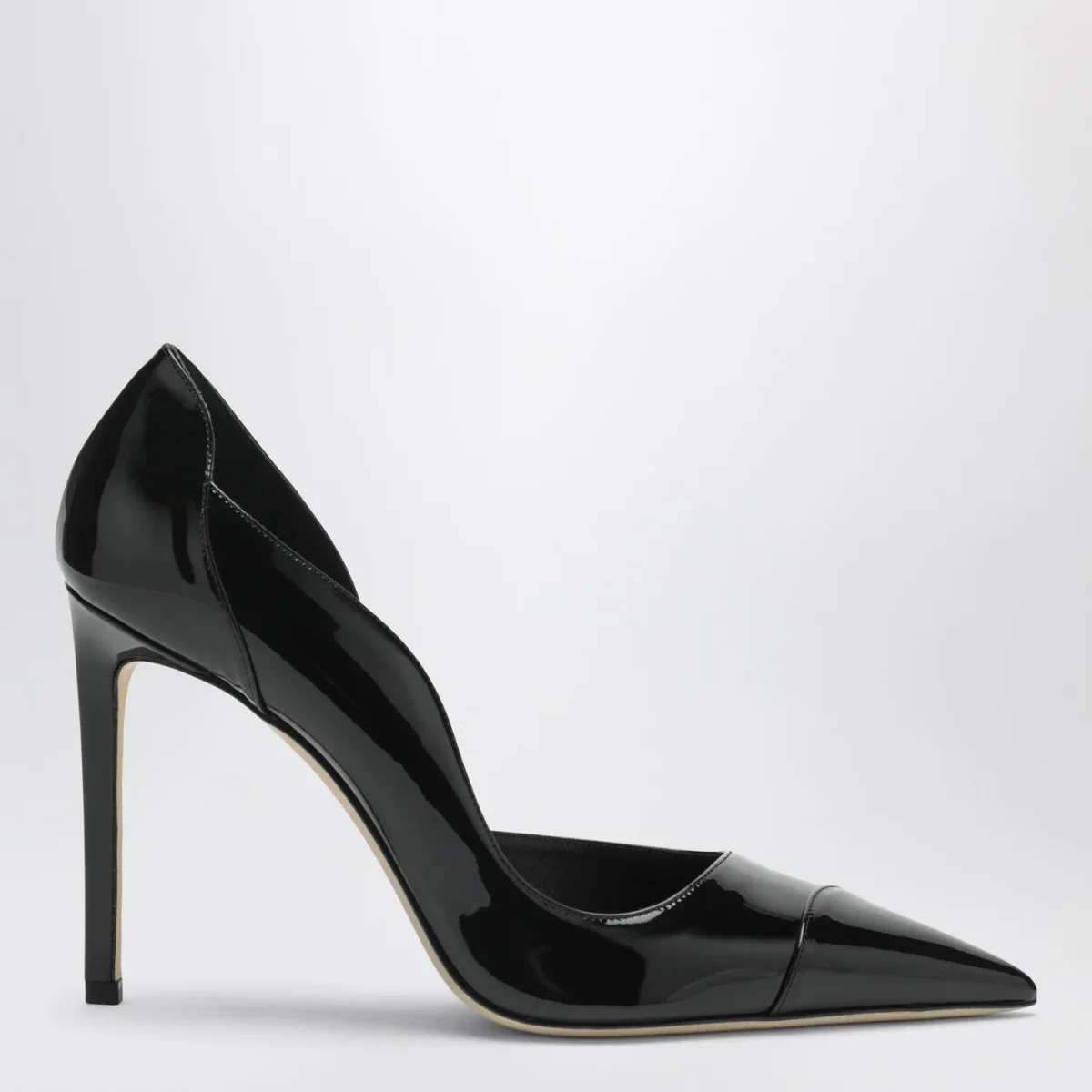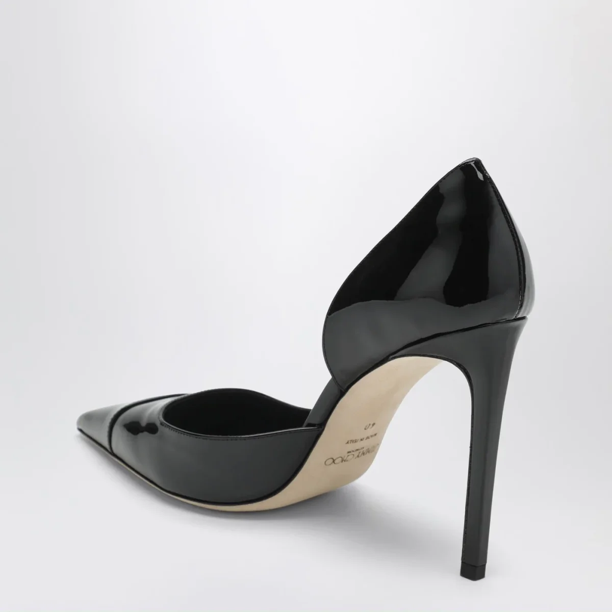 Décolleté di Jimmy Choo in pelle verniciata nero• design a punta• fascetta cucita• tacco alto a spillo