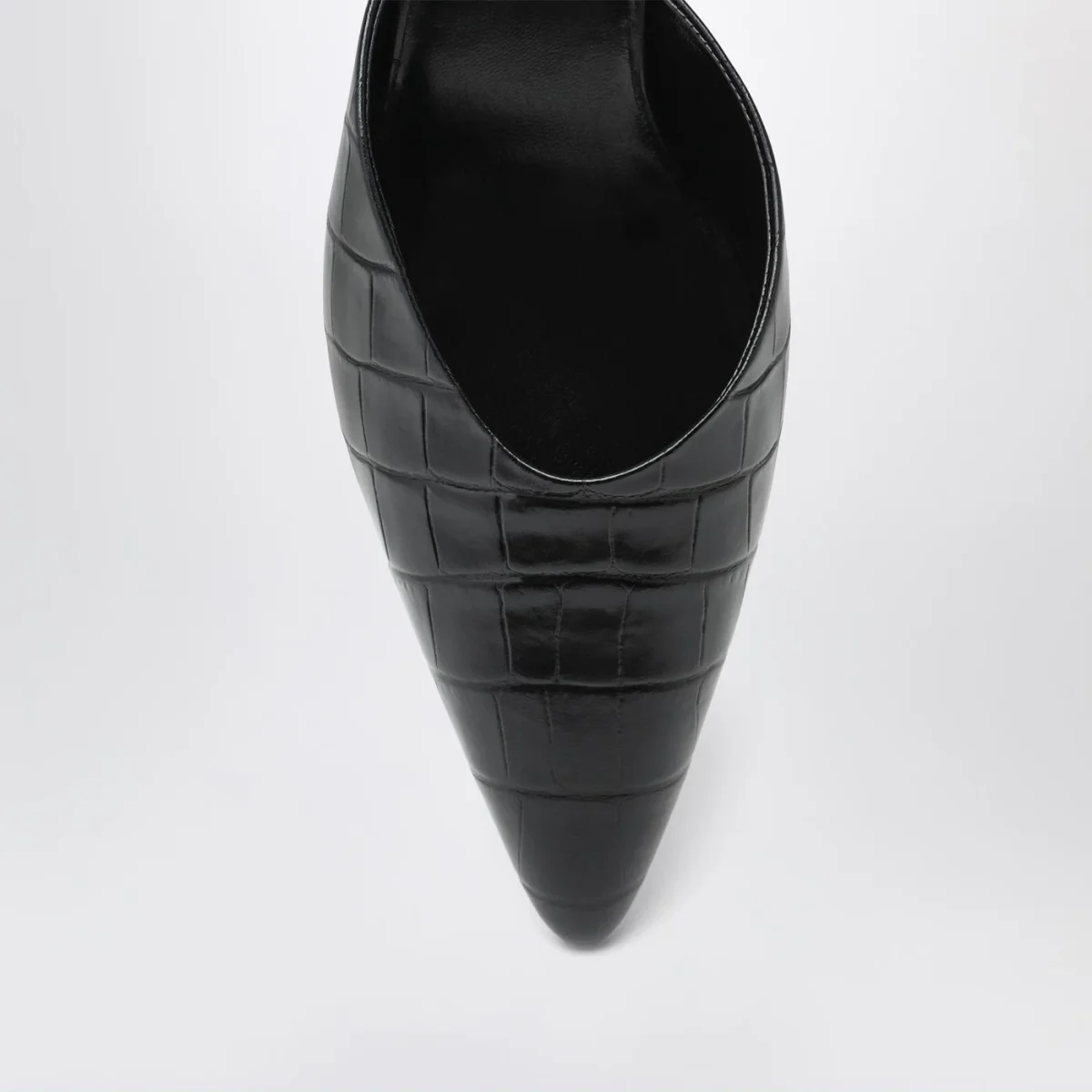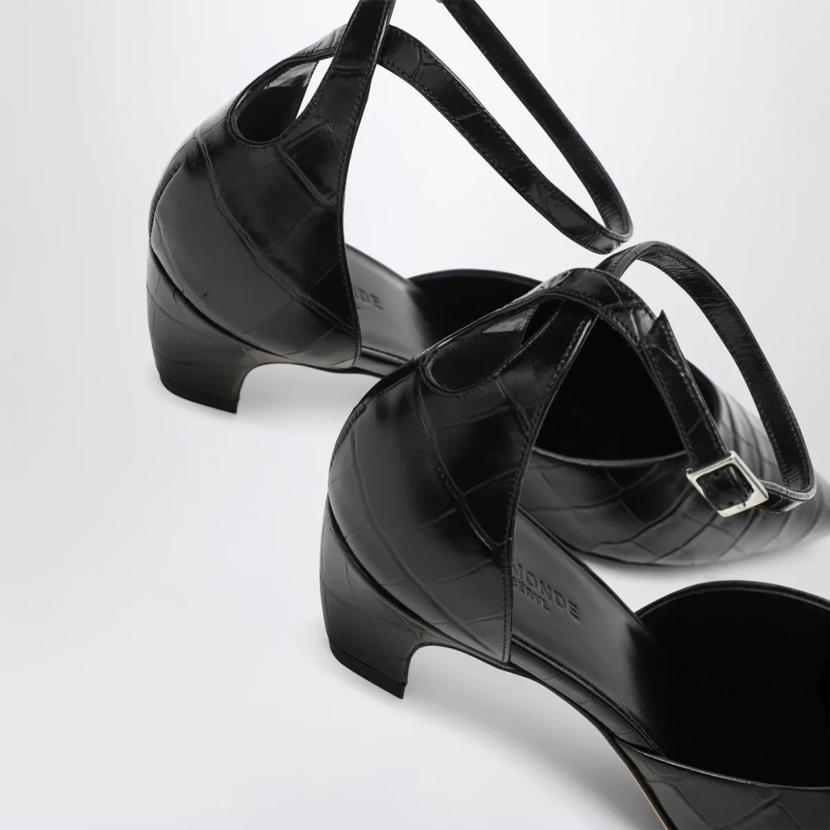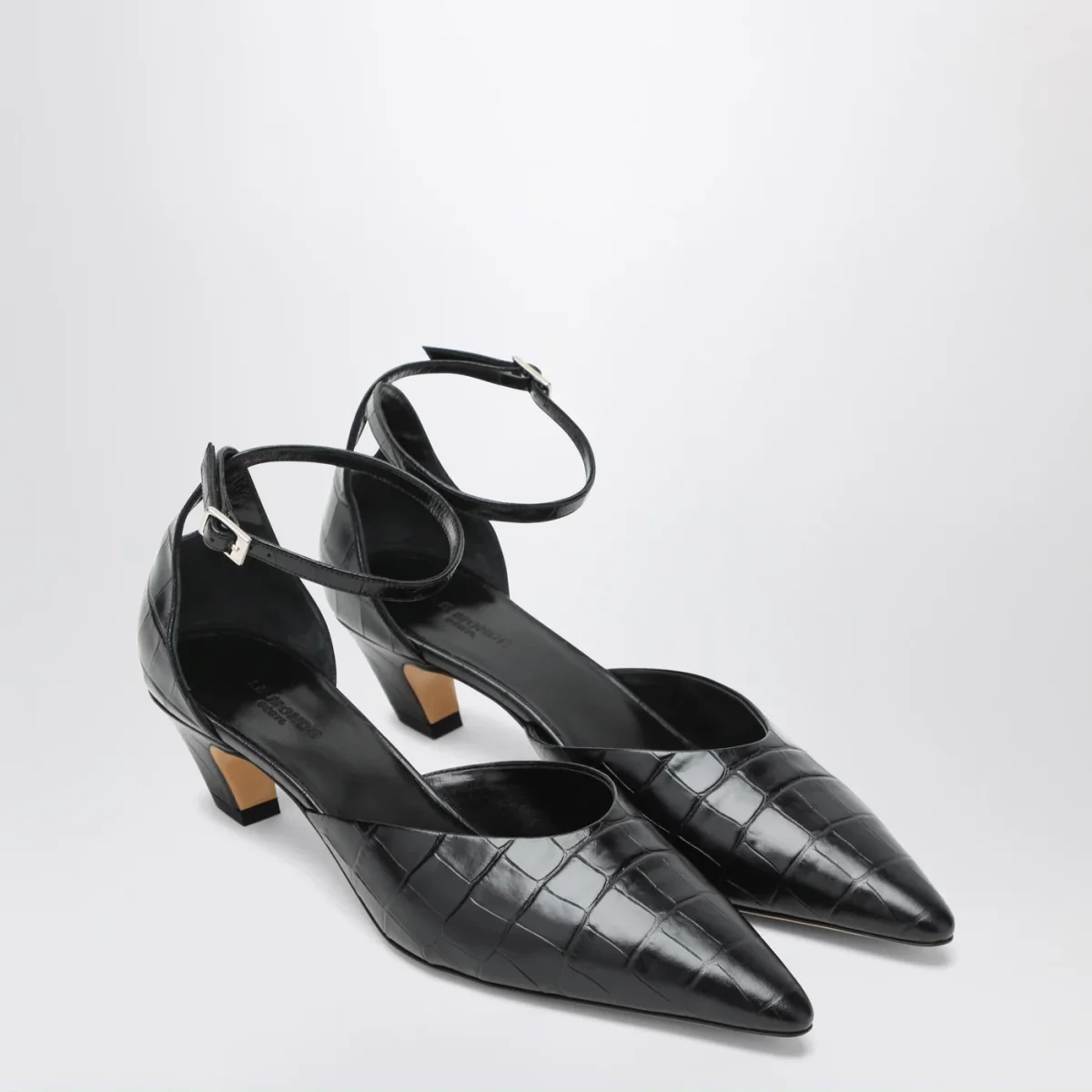 Décolleté di Le Monde Béryl in pelle nera effetto cocco, caratterizzata da design a punta, cinturino alla caviglia con fibbia, tacco basso e suola in cuoio.