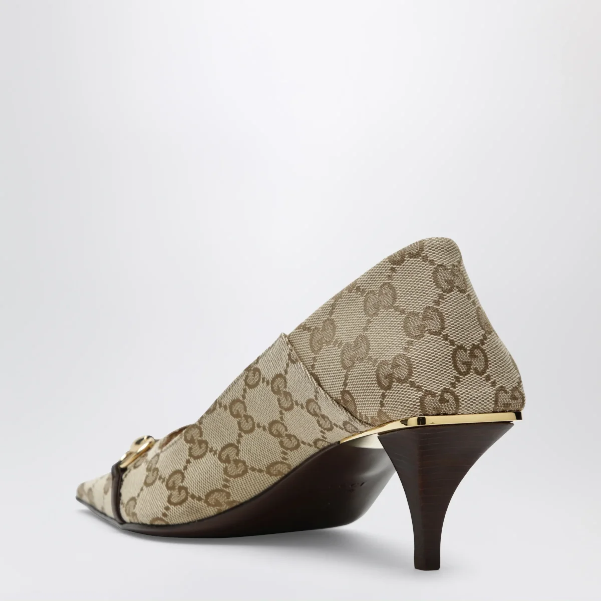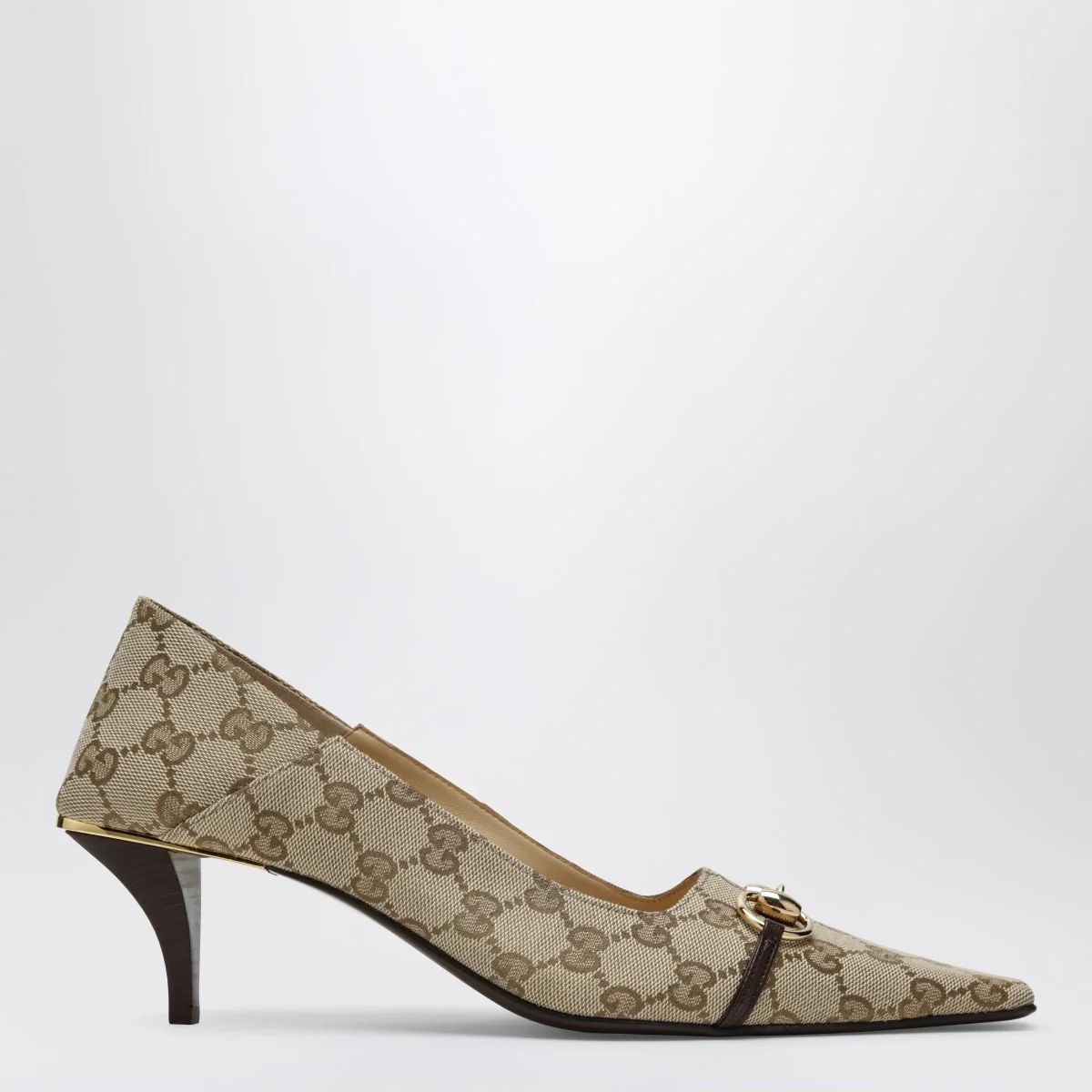 Décolleté Vittoria in tessuto GG e pelle sabbia/marrone