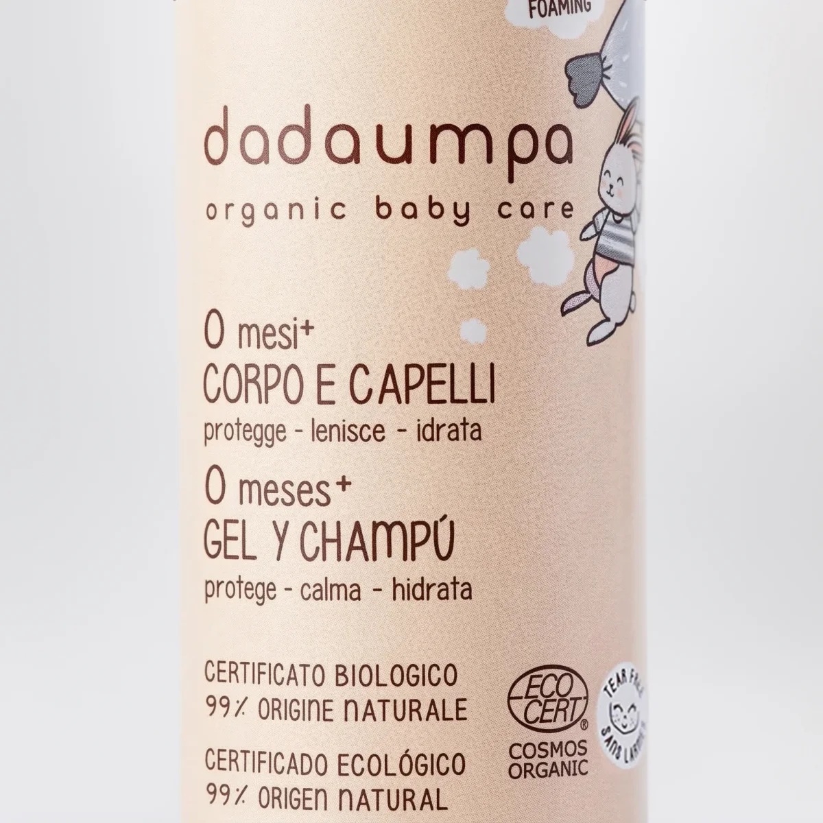Detergente corpo e capelli di Dadaumpa extra delicato ricco di olio biologico di mandorle• Azione emolliente e lenitiva