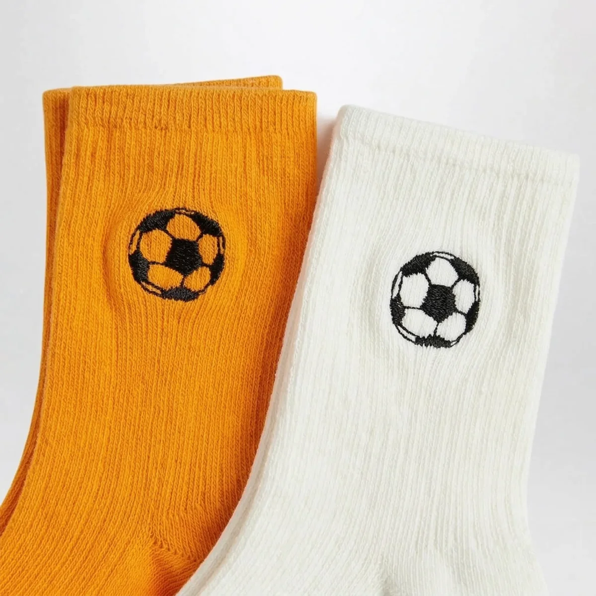 Due paia di calzini con ricamo palla da calcio bianco/arancione