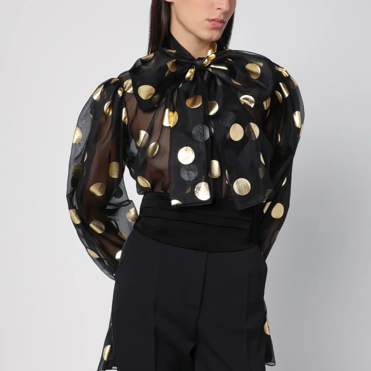 Fascia smoking di Dolce & Gabbana in seta nera, caratterizzata da chiusura posteriore con gancio regolabile e etichetta con logo.