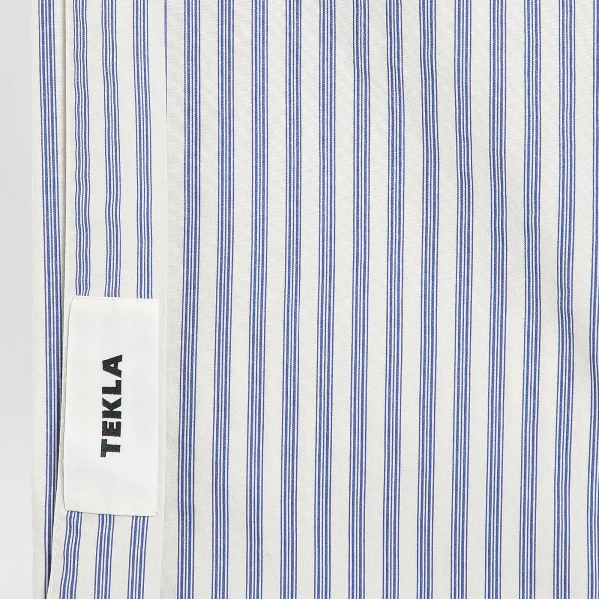 Federa singola per cuscino di Tekla in percalle di cotone bianca a righe con patch logo lettering sul bordo interno.
