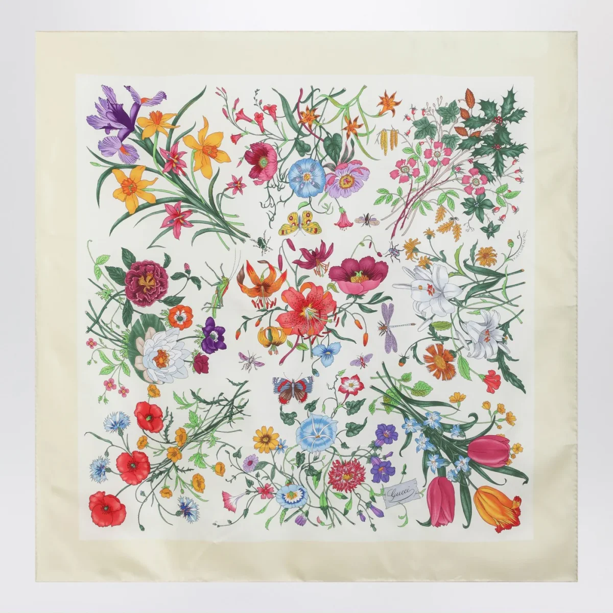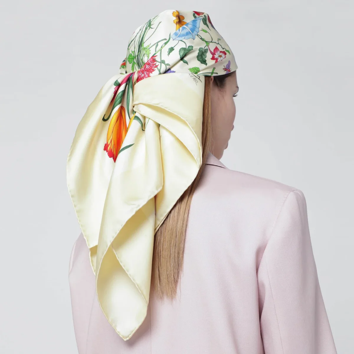 Foulard di Gucci in seta gialla con motivo Gucci Flora