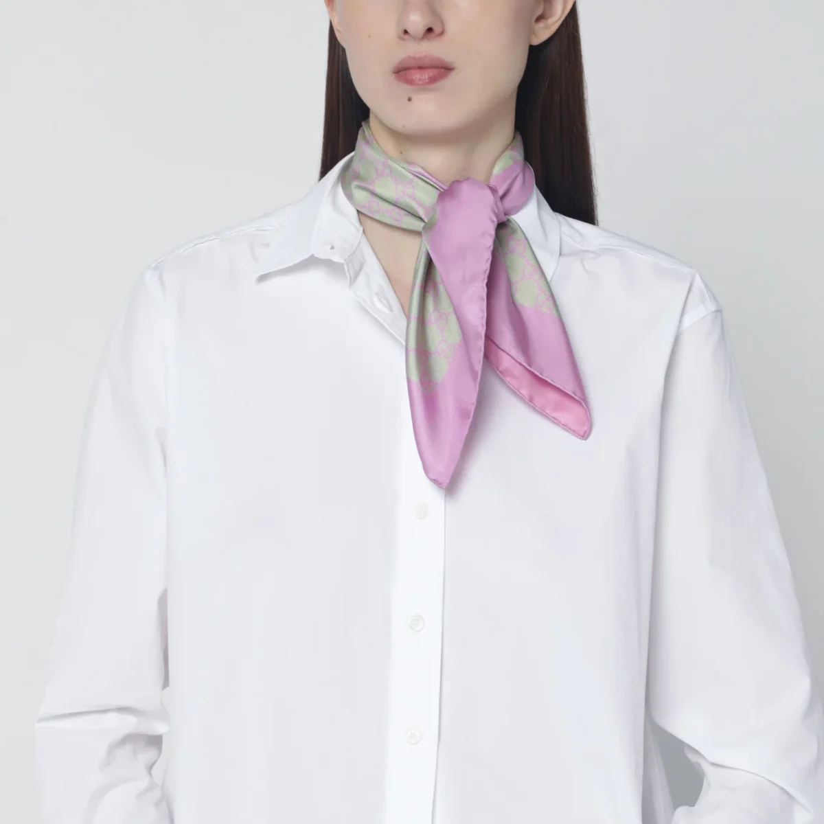 Foulard di Gucci in seta con stampa GG verde acqua e rosa