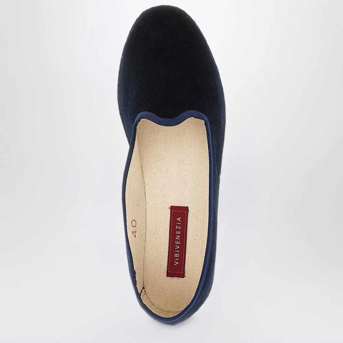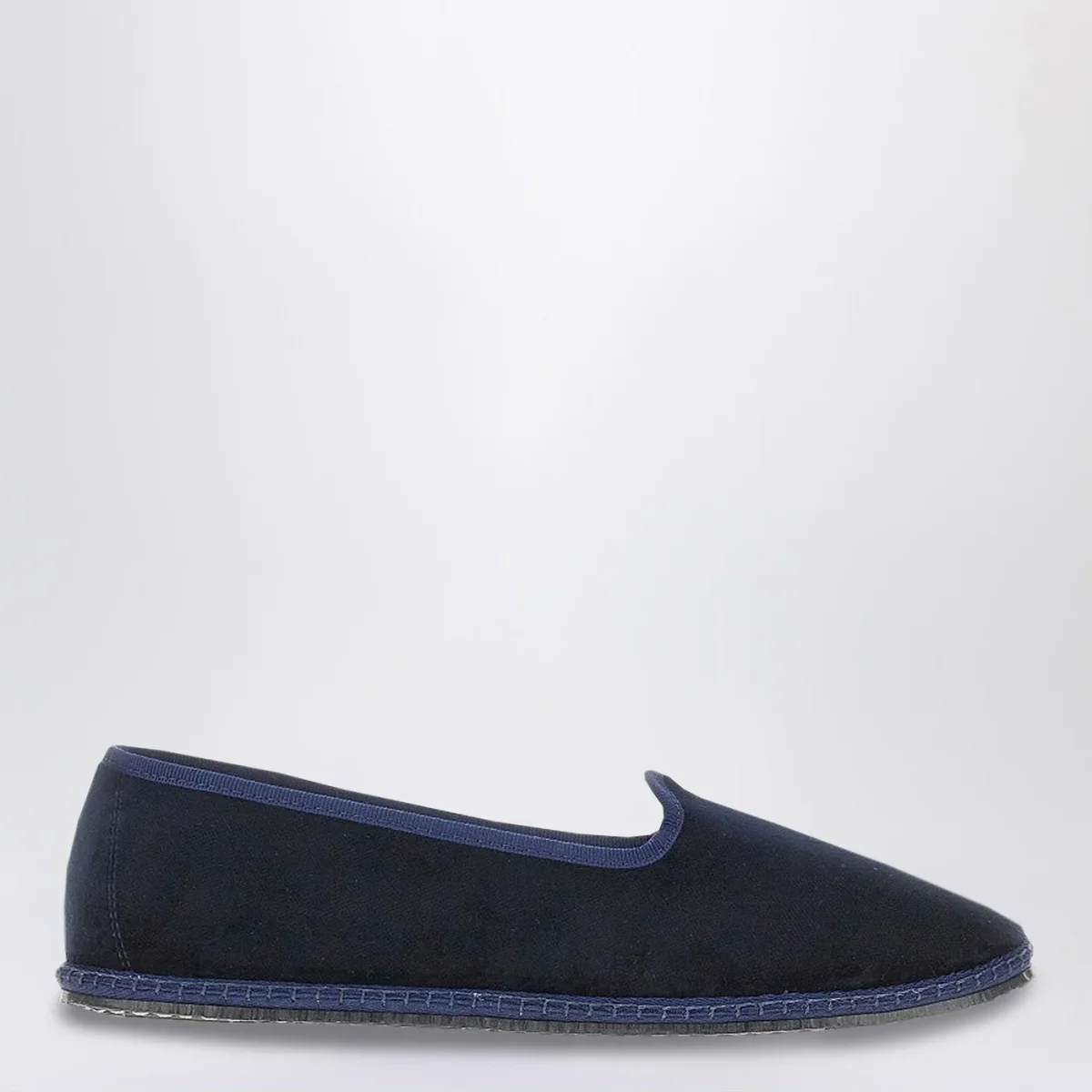 Friulane di Vibi Venezia in velluto blu e suola in gomma.