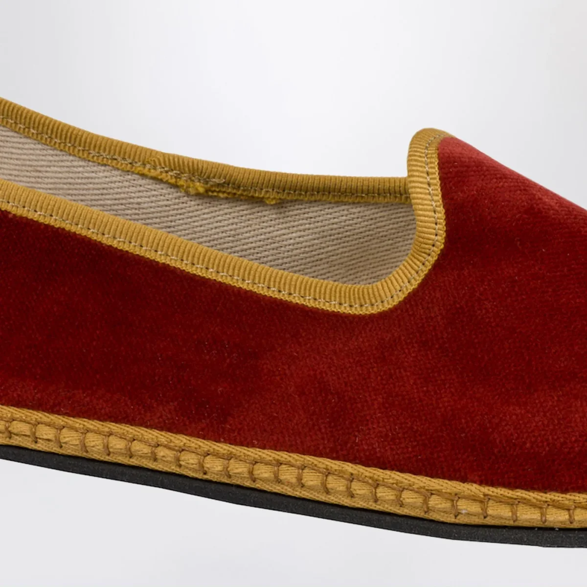 Friulane di Vibi Venezia in velluto color rialto, caratterizzate da profilo ocra e suola in gomma.