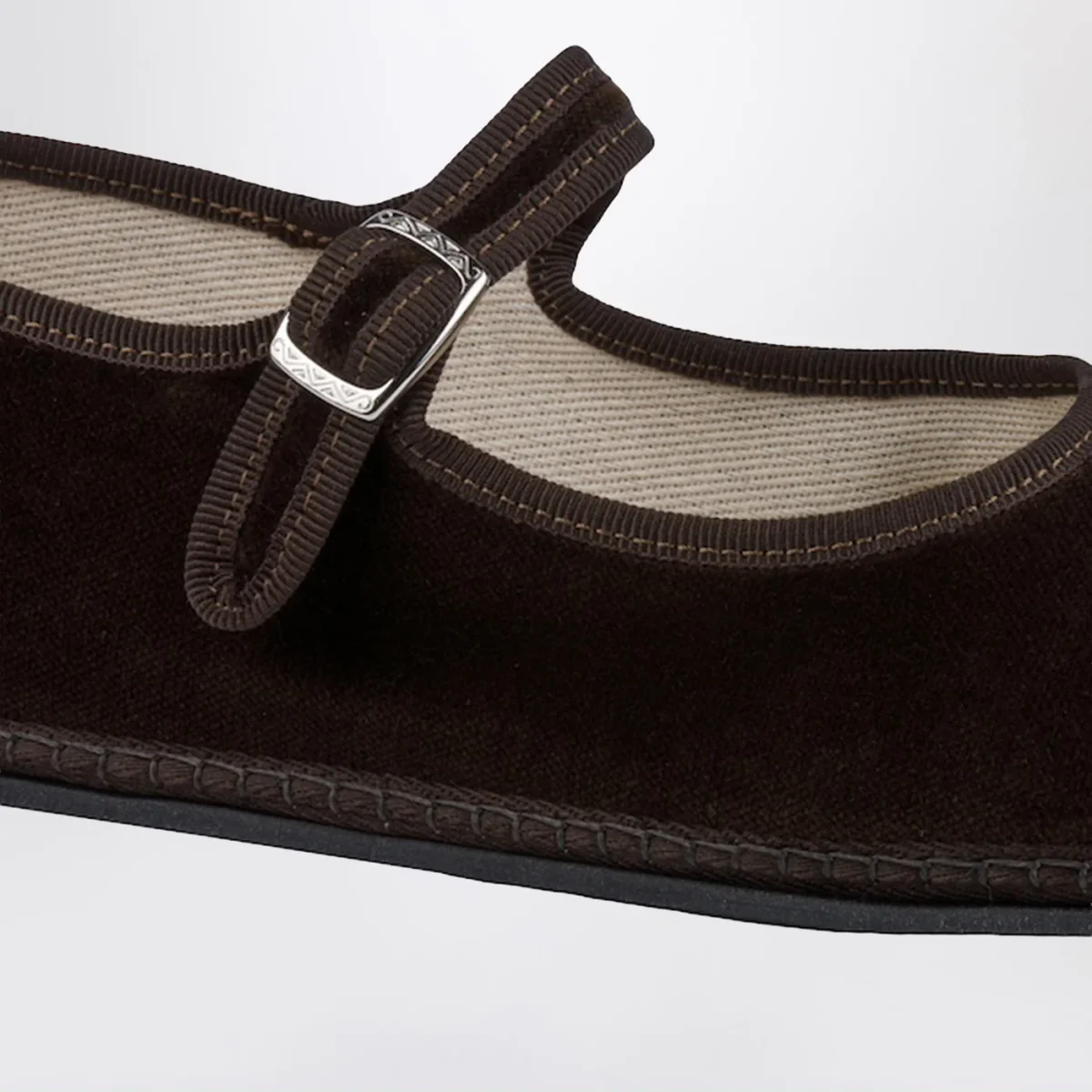 Friulane di Vibi Venezia in velluto marrone e suola in gomma.