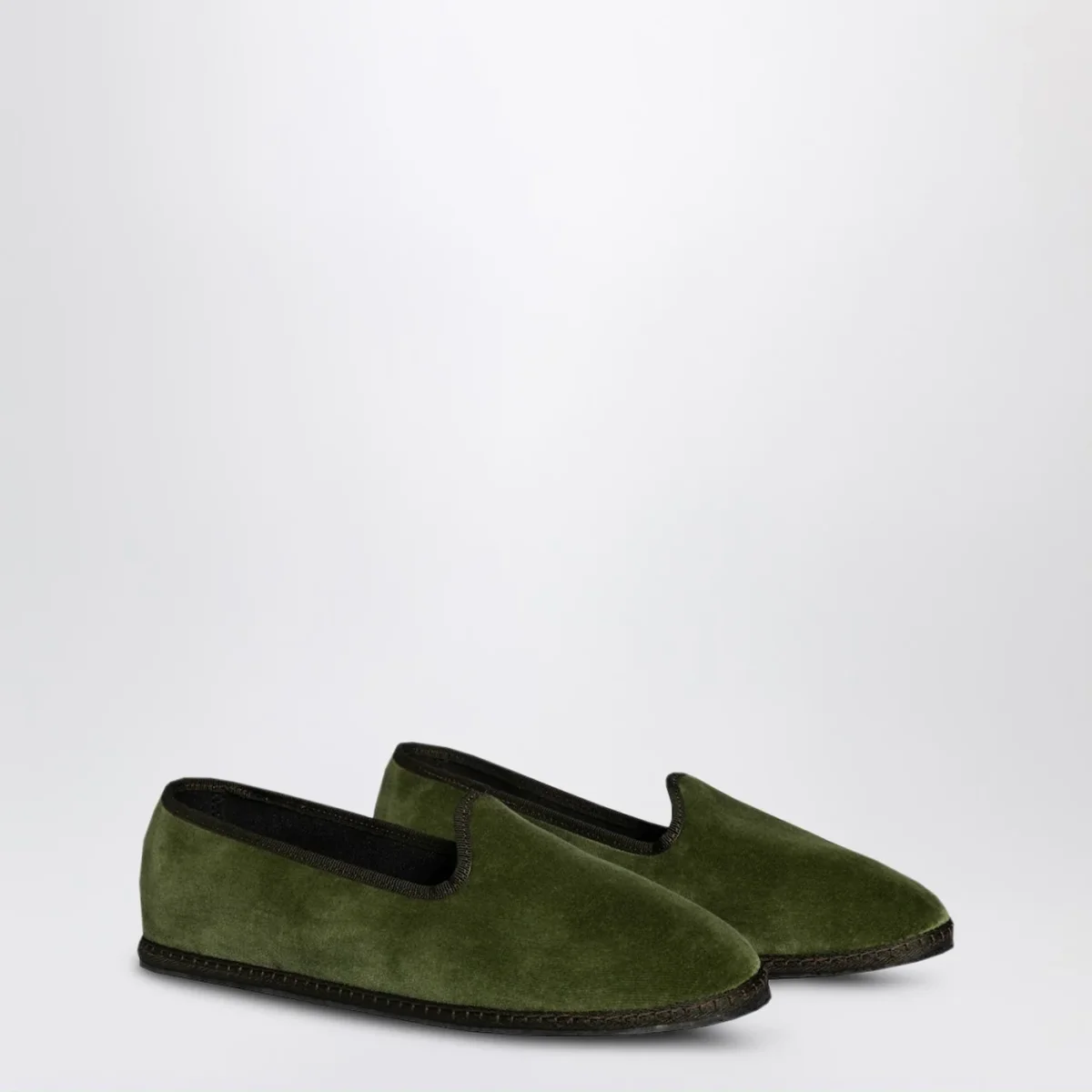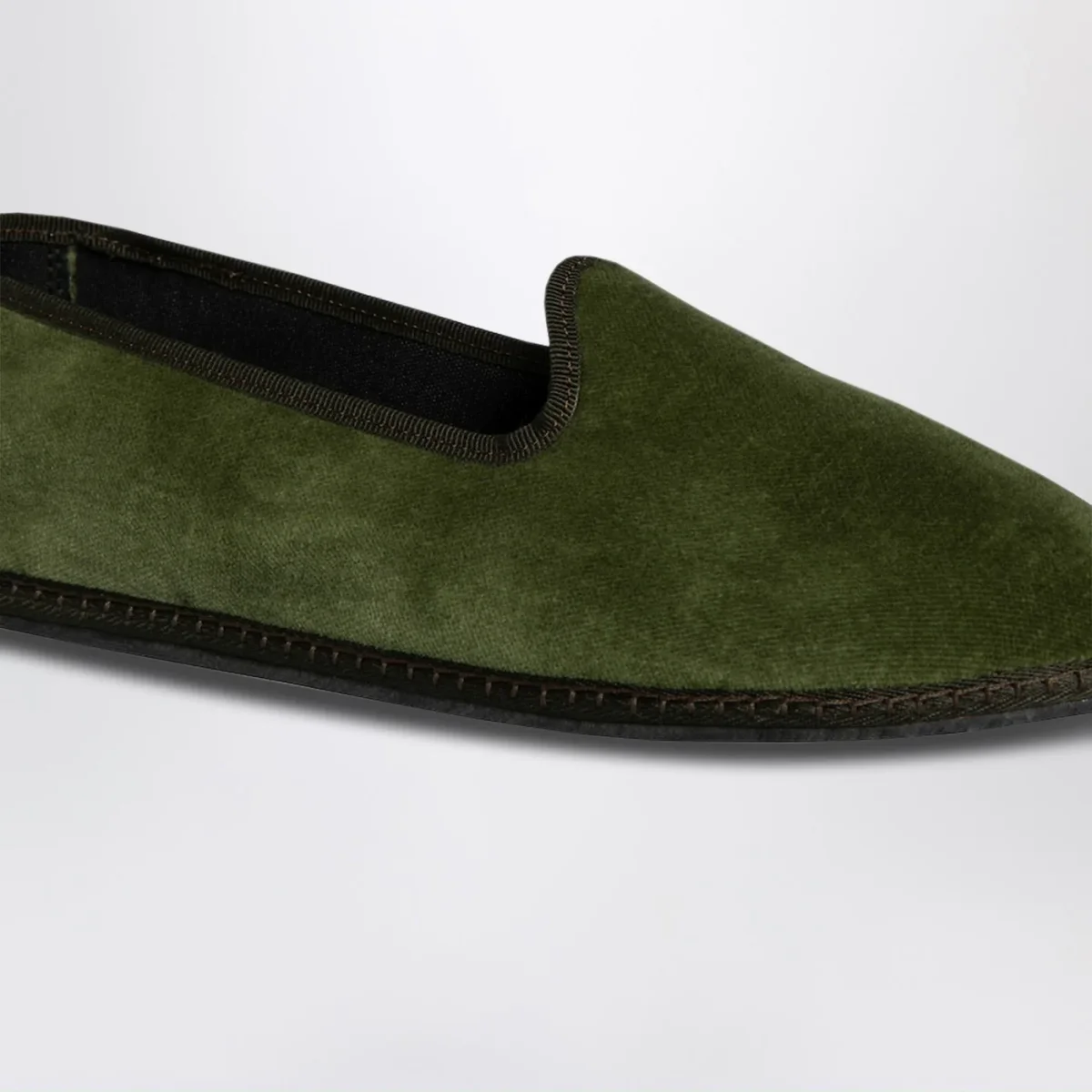Friulane di Vibi Venezia in velluto verde bottiglia, caratterizzate da profilo grigi e suola in gomma.