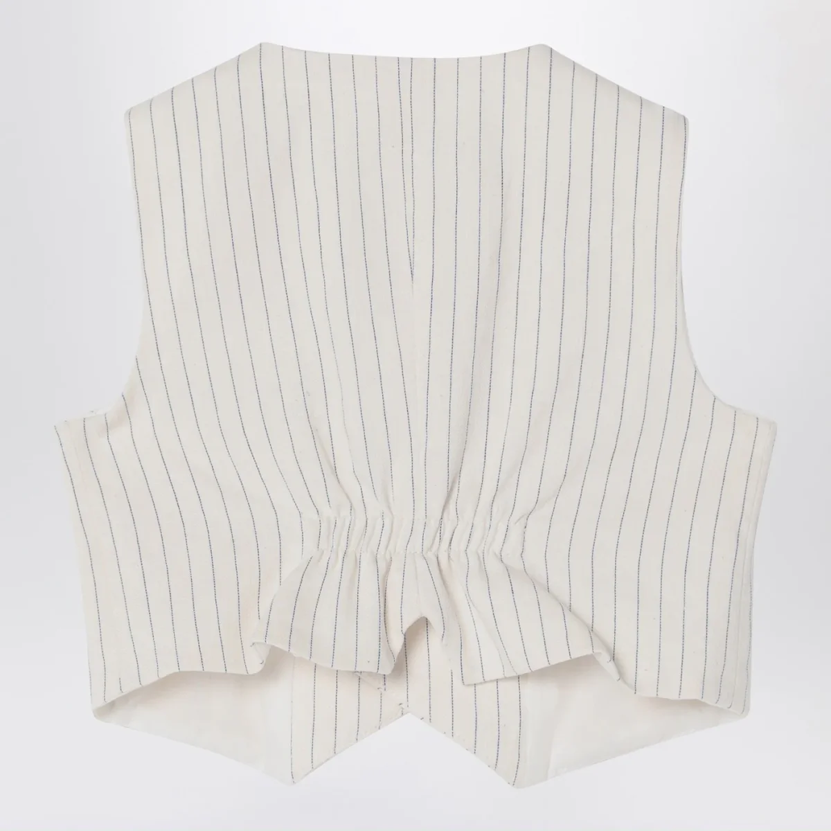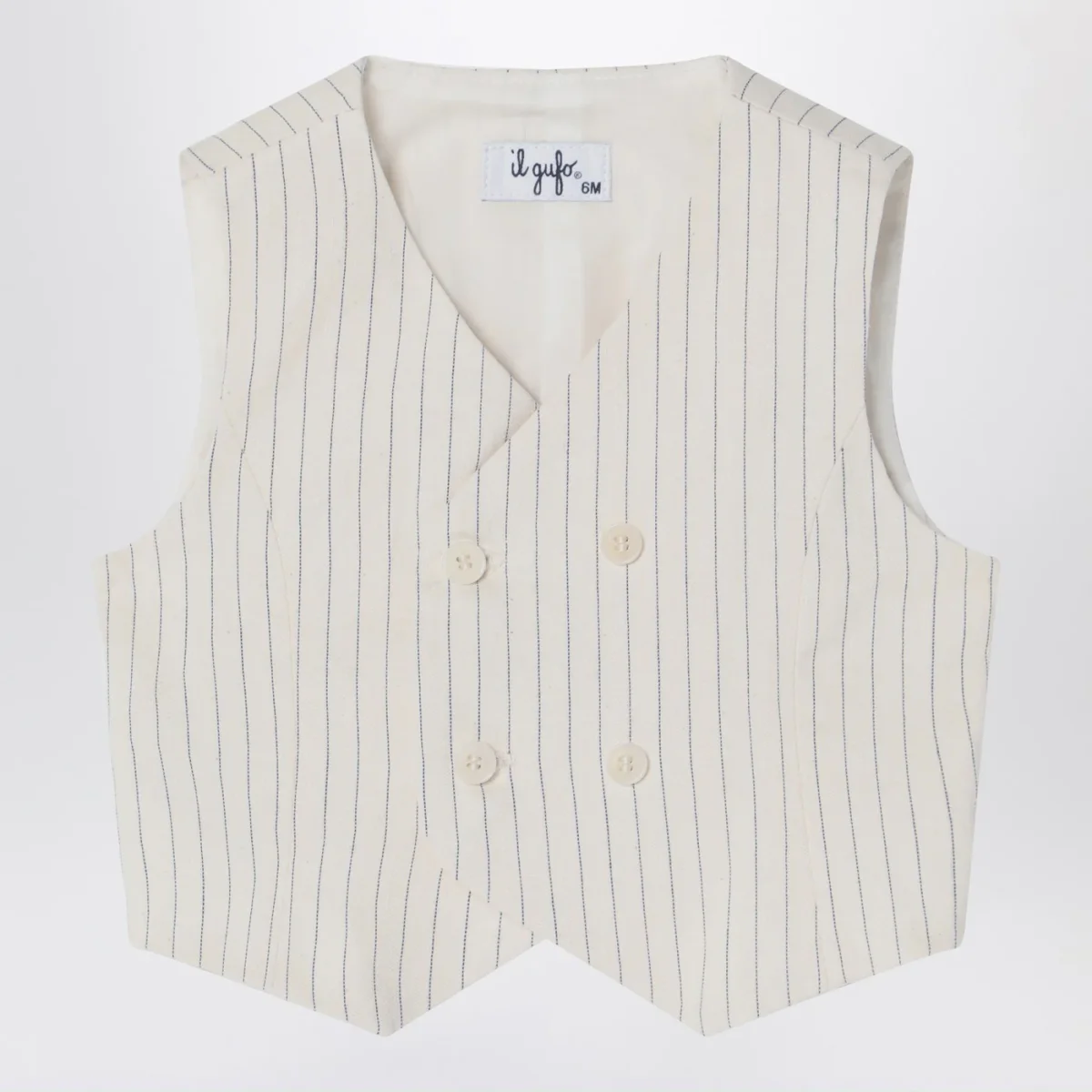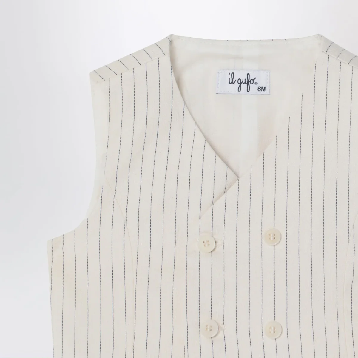 Gilet doppiopetto de Il Gufo in misto cotone bianco latte con motivo gessato, caratterizzato da abbottonatura frontale, scollo a V e dettaglio elastico sul retro.