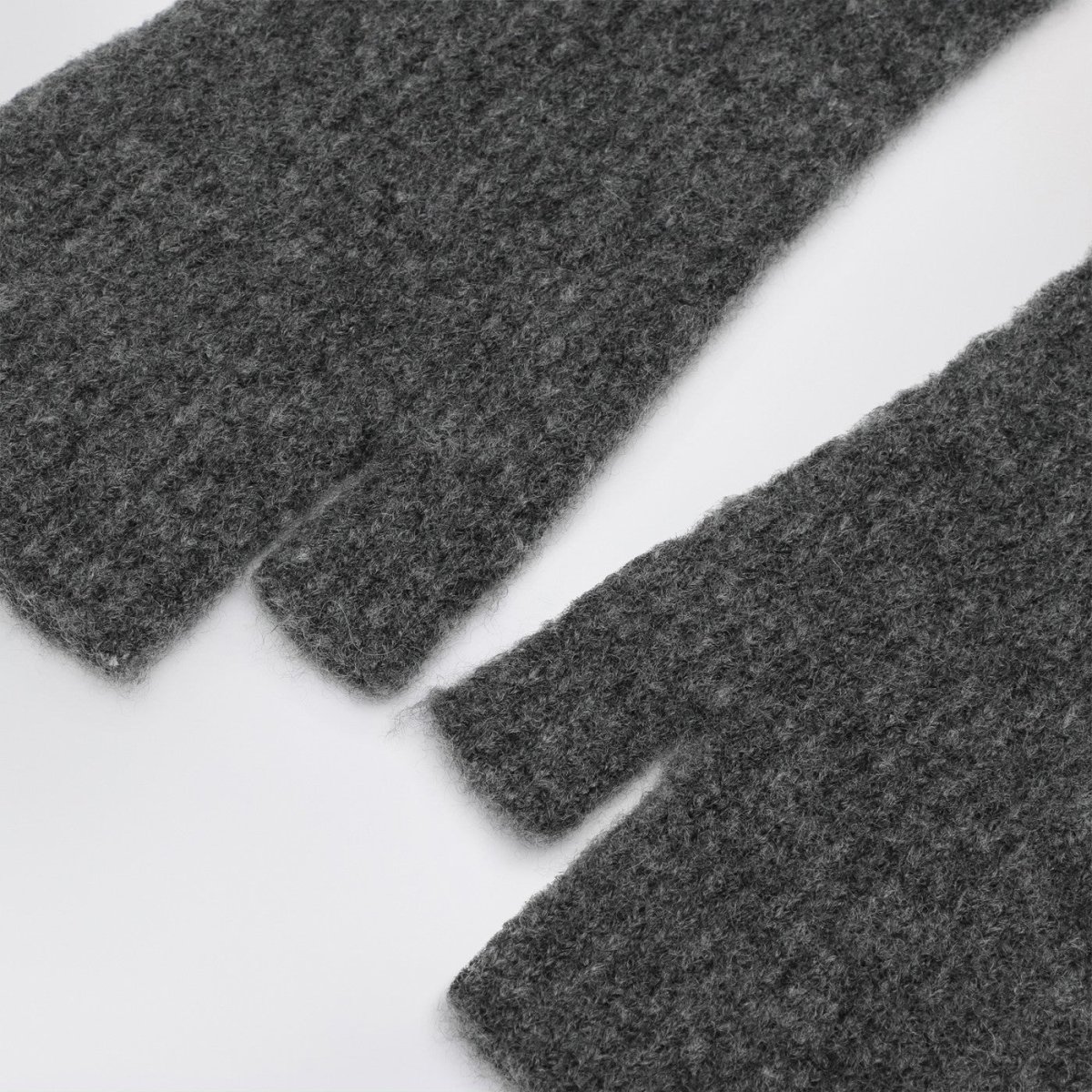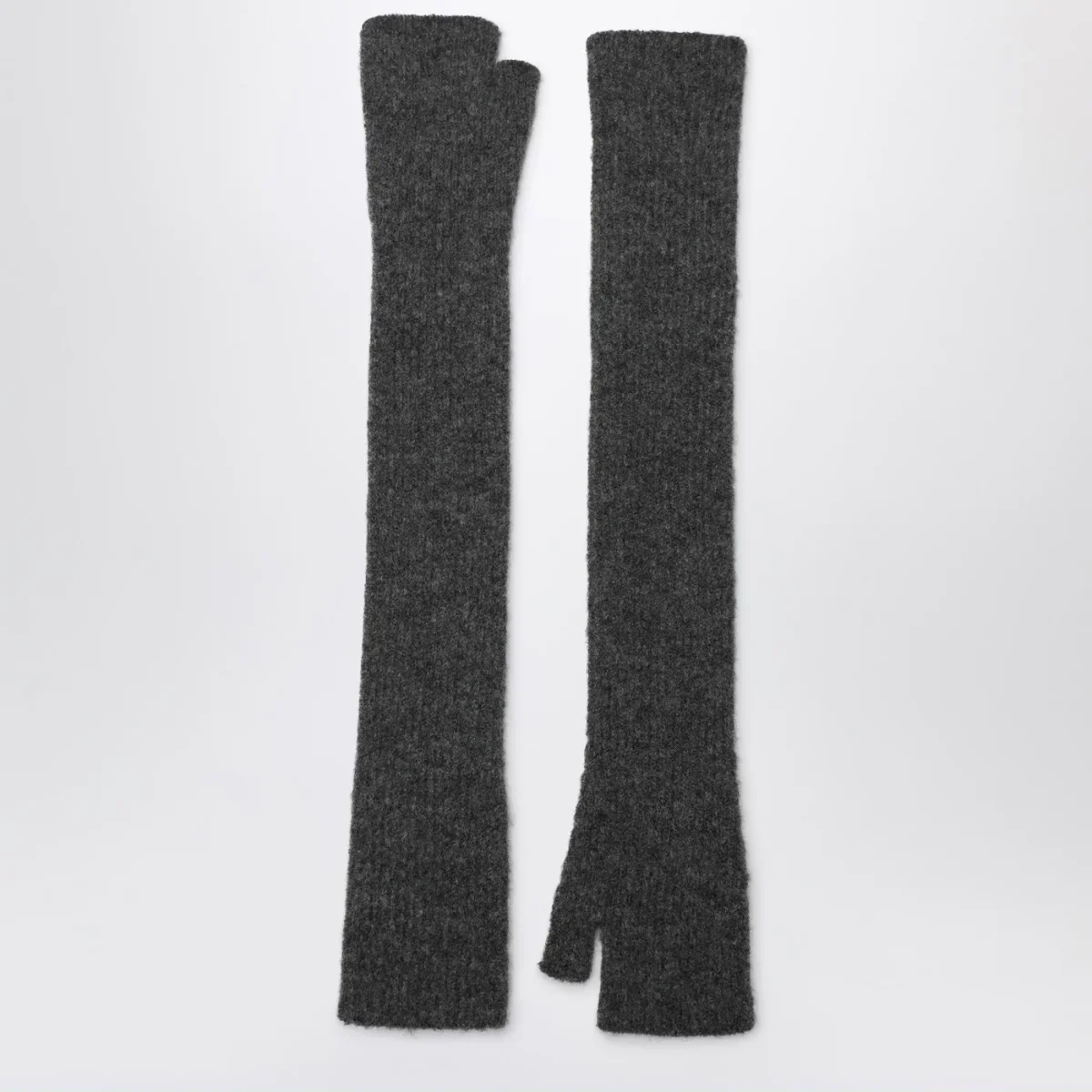 Guanti lunghi senza dita di Roberto Collina in misto cashmere e seta grigi antracite con design a costine.