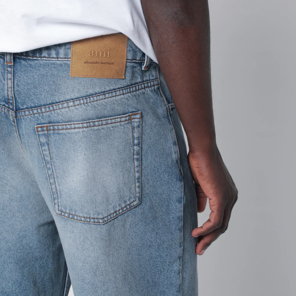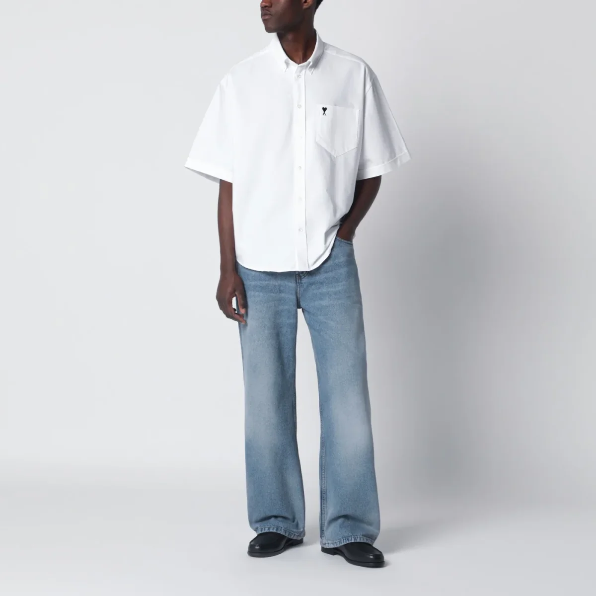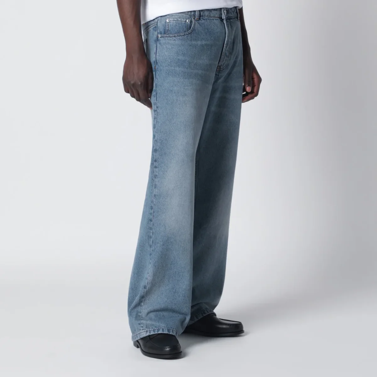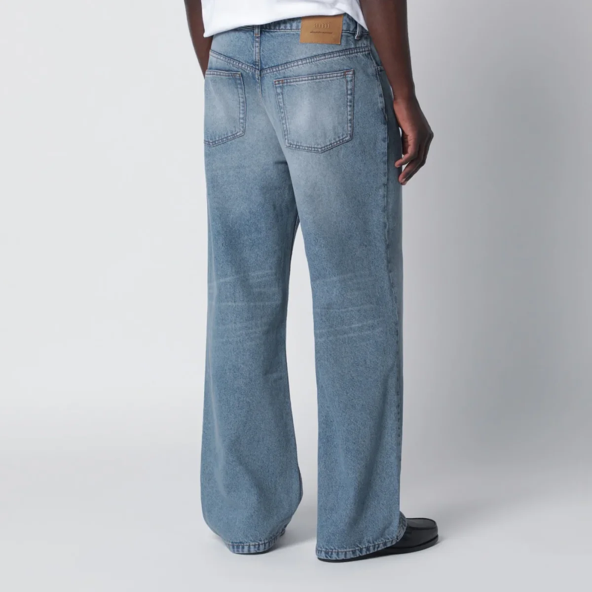 Jeans ampio di Ami Paris in denim di cotone blu effetto slavato