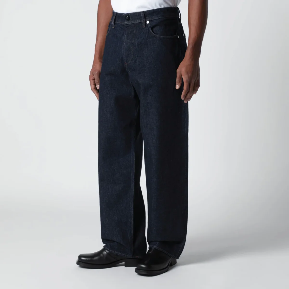 Jeans di Stone Island della linea Denim Research in denim di cotone blu indaco• passanti in vita• chiusura con zip e bottone• cinque tasche classiche• cuciture a vista ed etichetta logo Compass tono su tono sul retro