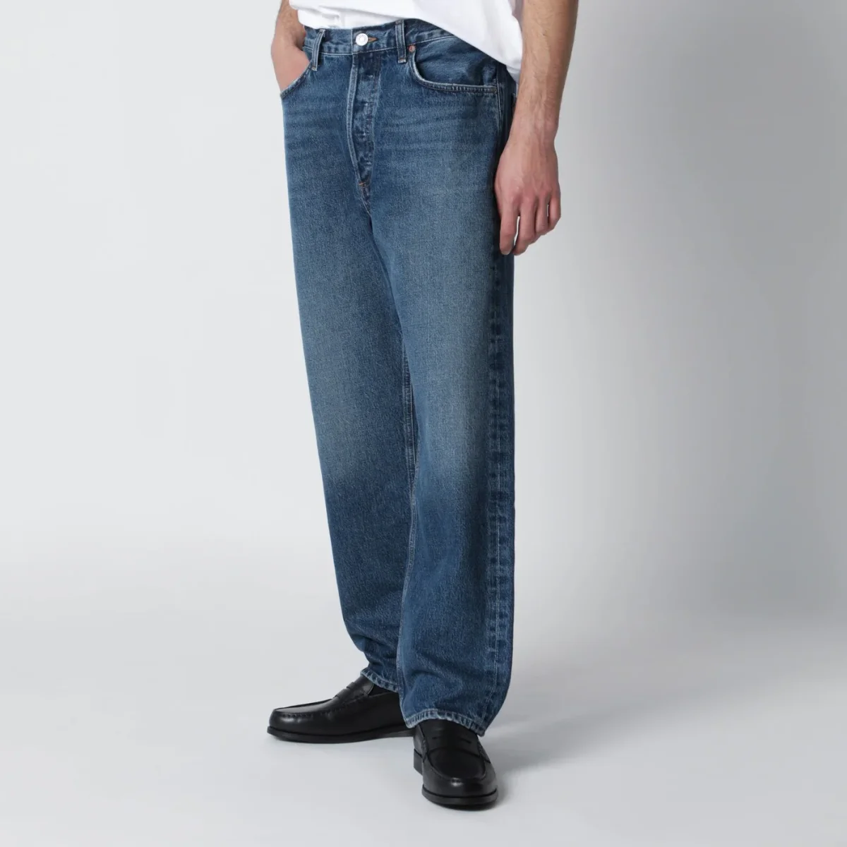 Jeans di Agolde in denim di cotone rigenerato blu effetto slavato• chiusura frontale con zip e bottone• passanti in vita• cinque tasche classiche