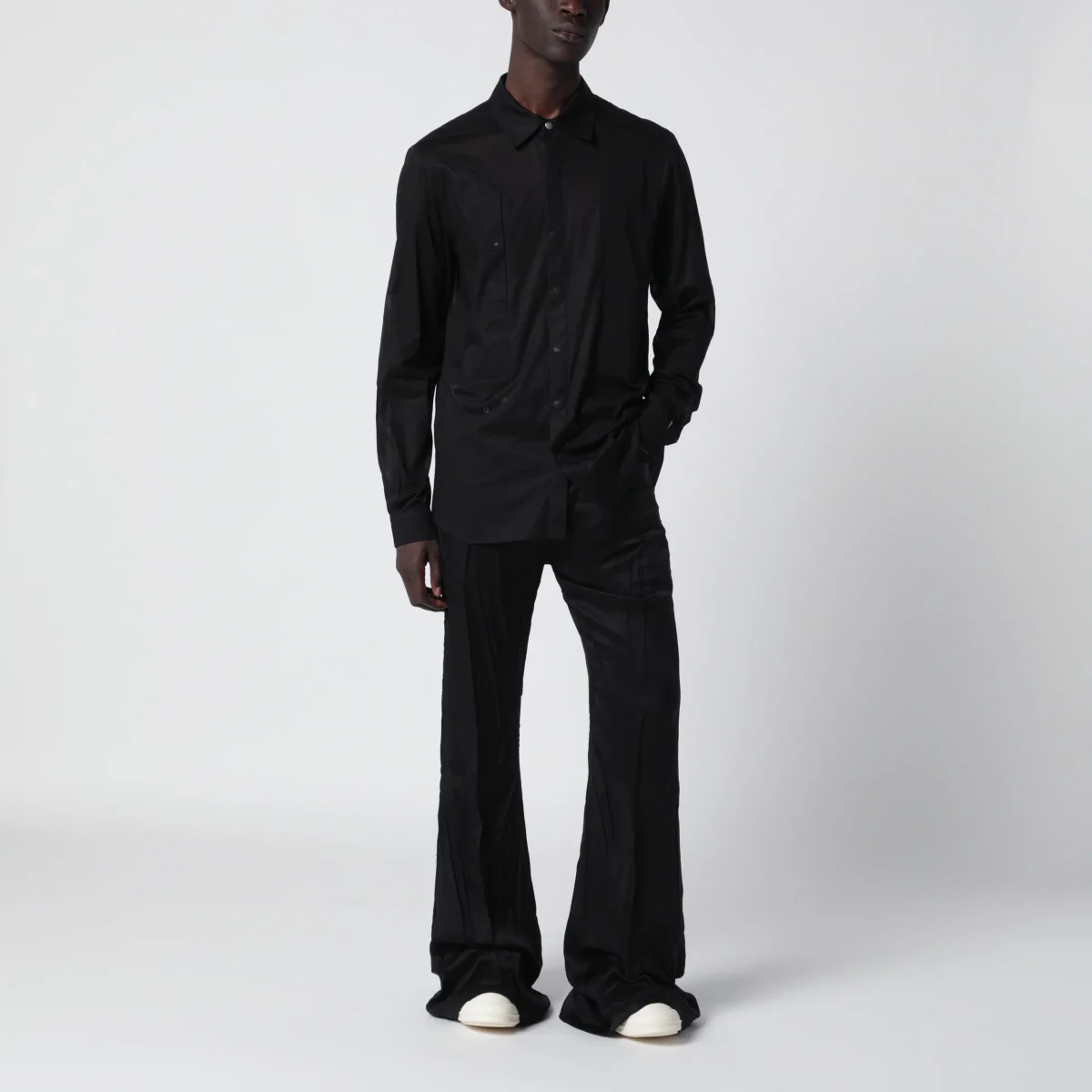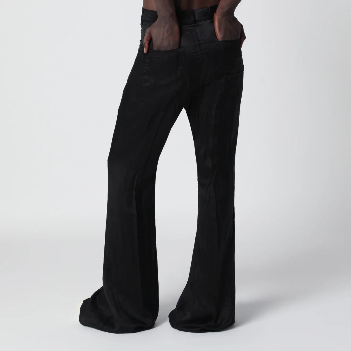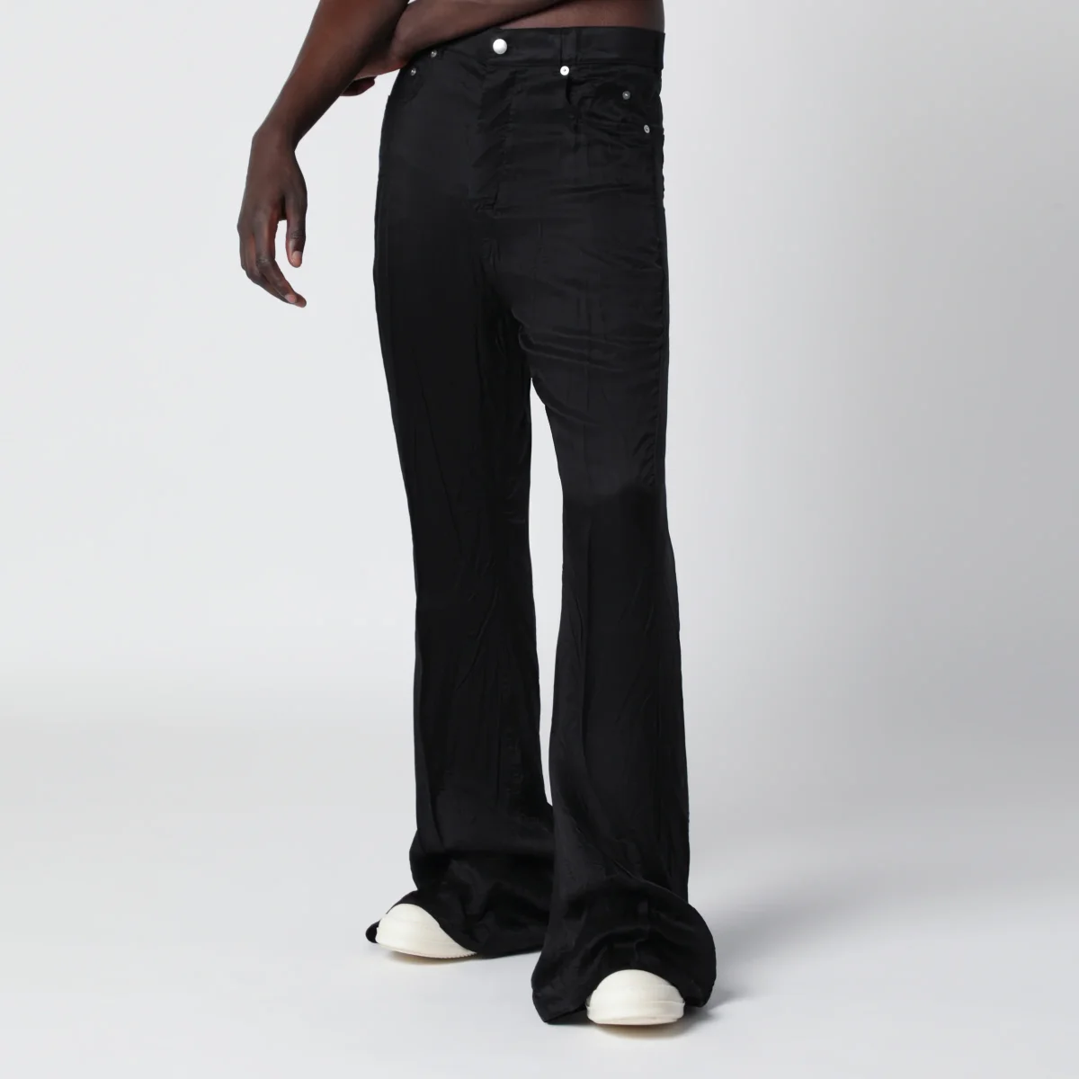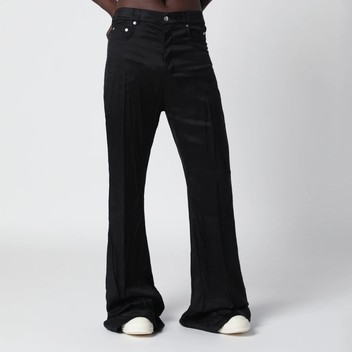 Jeans Bolan Bootcut in twill di cupro di Rick Owens• Colore: Nero• Vita alta e vestibilità slim• Taglio bootcut lungo• Modello a 6 tasche• Chiusura con zip nascosta e bottone superiore• Cintura con rivetti e tasche posteriori a toppa con impunture