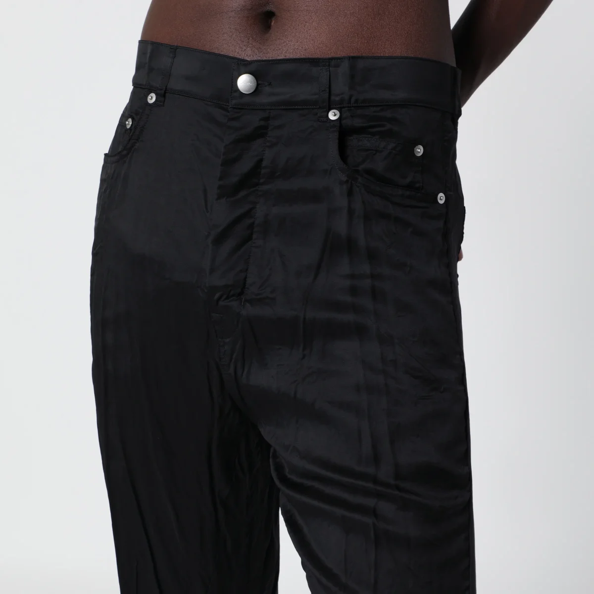 • Cintura con rivetti e tasche posteriori a toppa con impunture