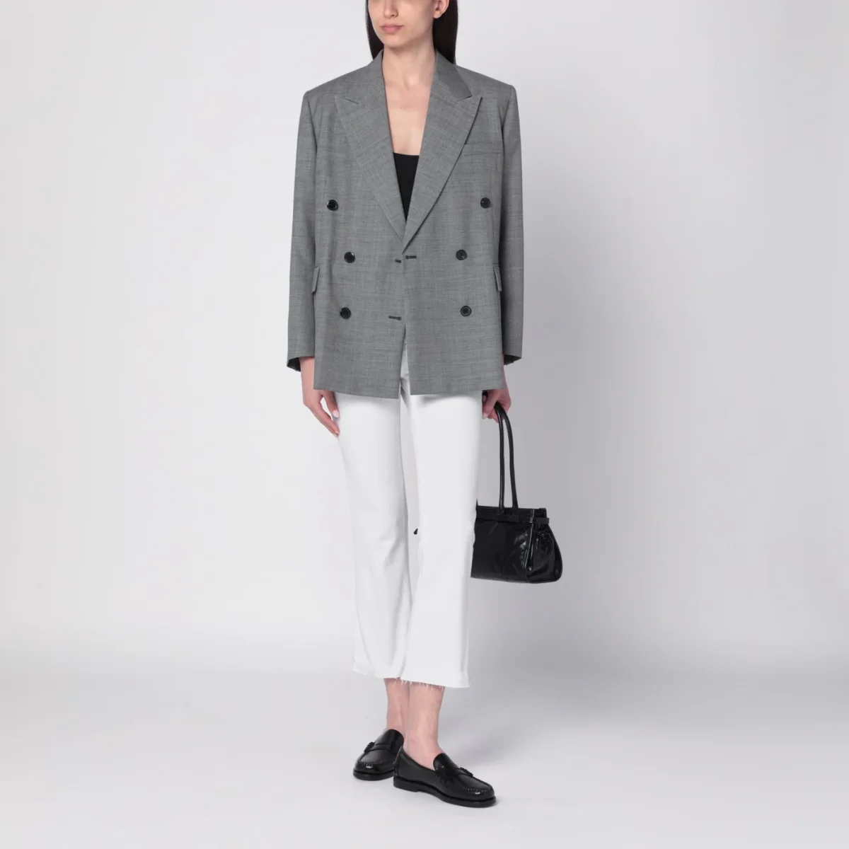 Abito lungo grigio con drappeggi