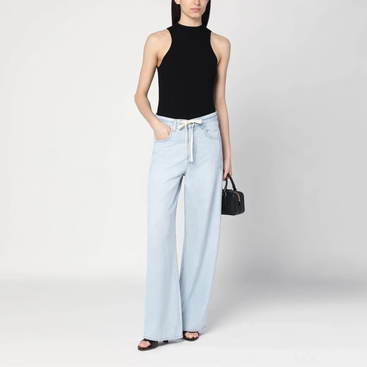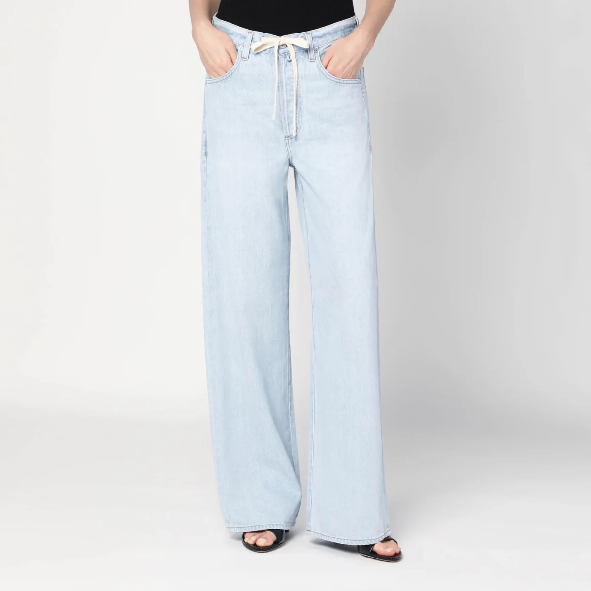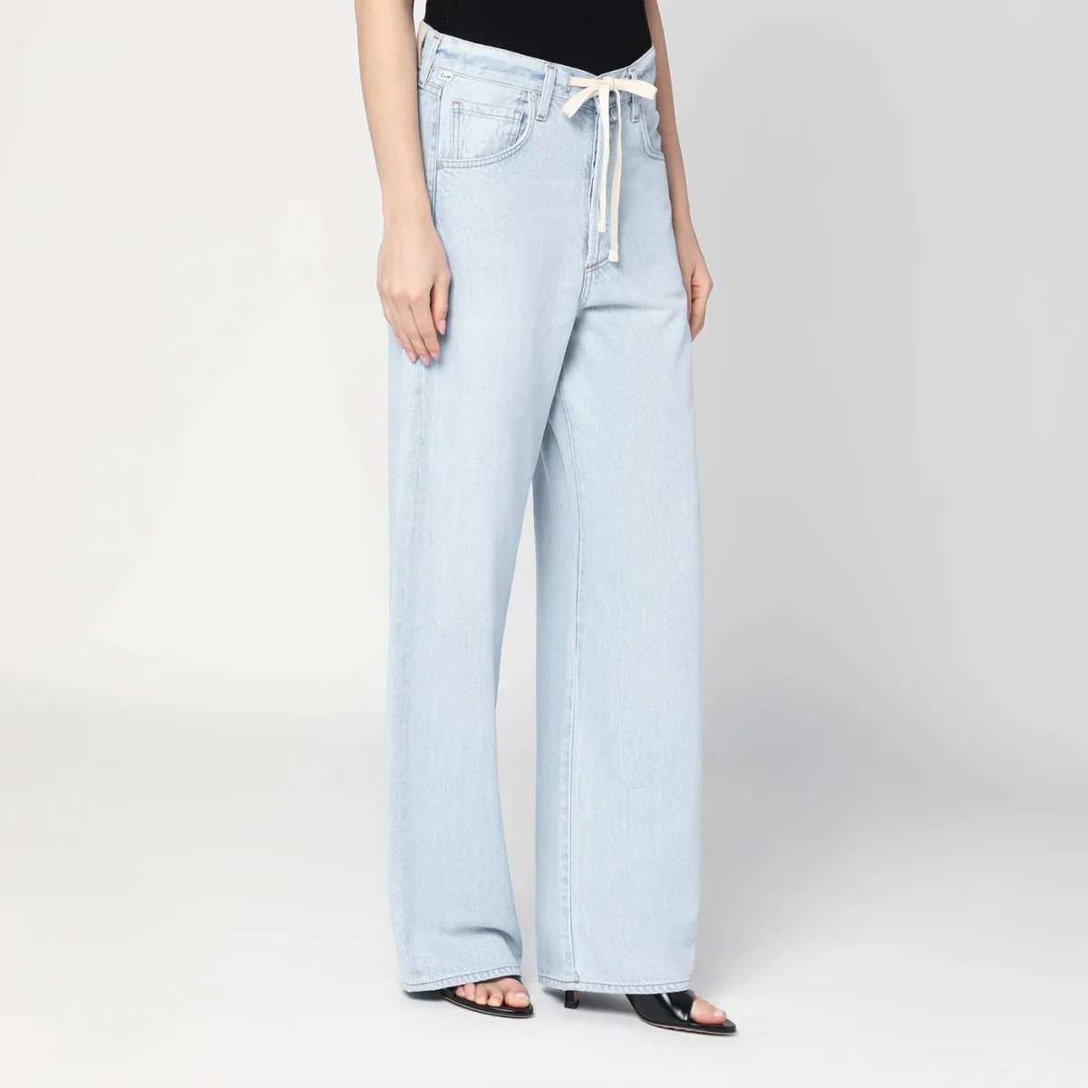 Jeans ampio di Citizens of Humanity in denim di cotone azzurro, caratterizzato da chiusura frontale con zip e bottone, vita alta con passanti e coulisse, cinque tasche classiche, patch logo posteriore e piccola targhetta logo.