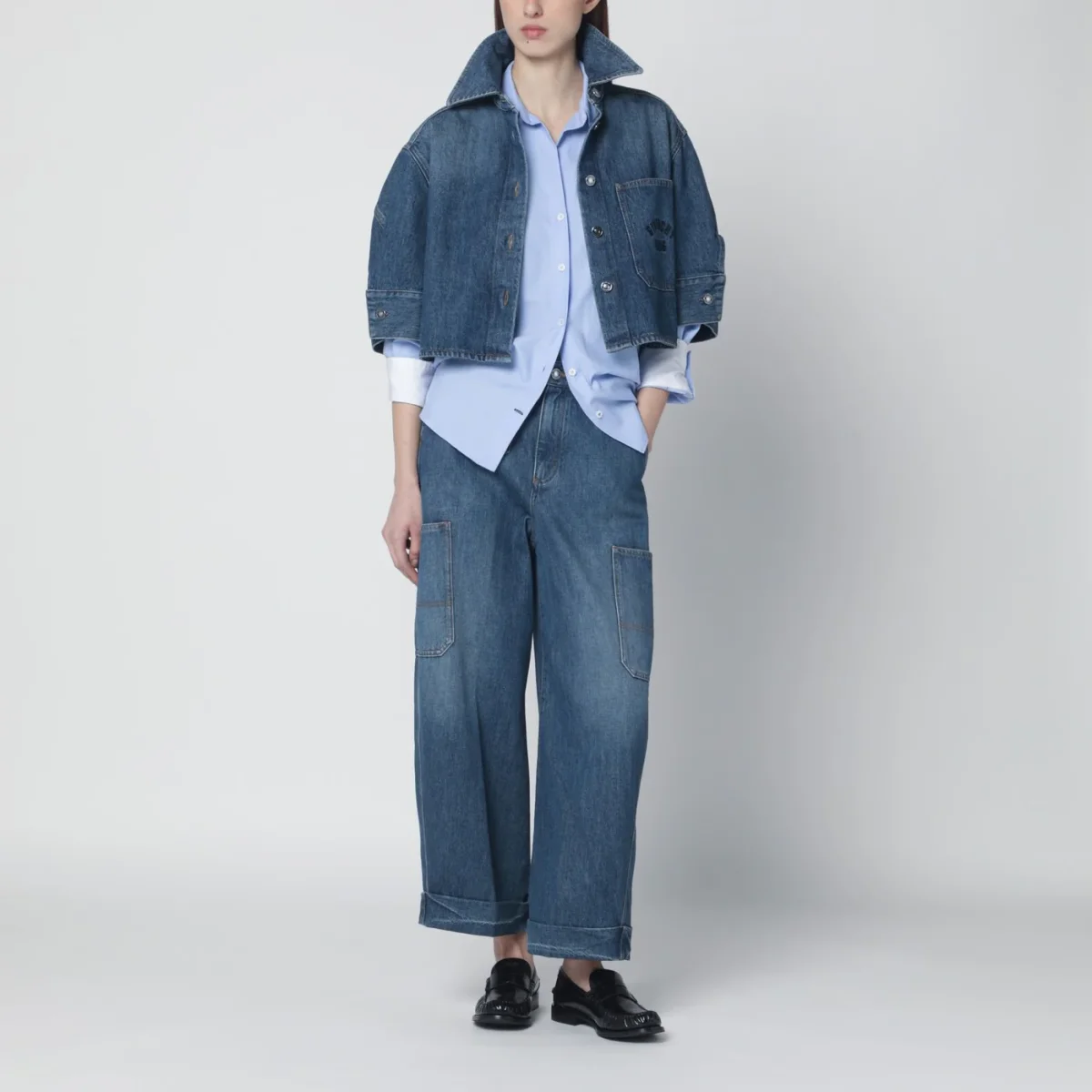 Jeans Cocoon cargo cropped blu medio