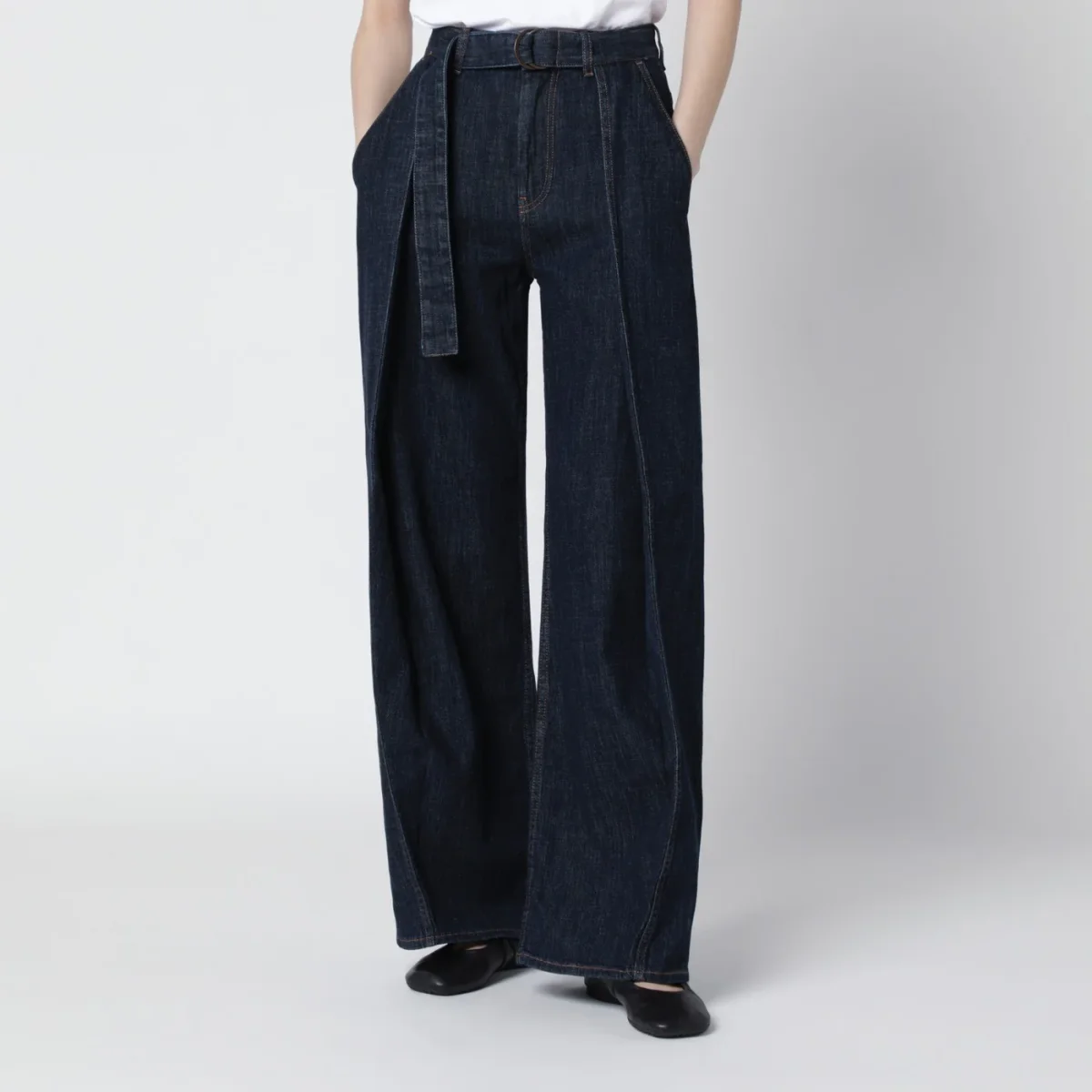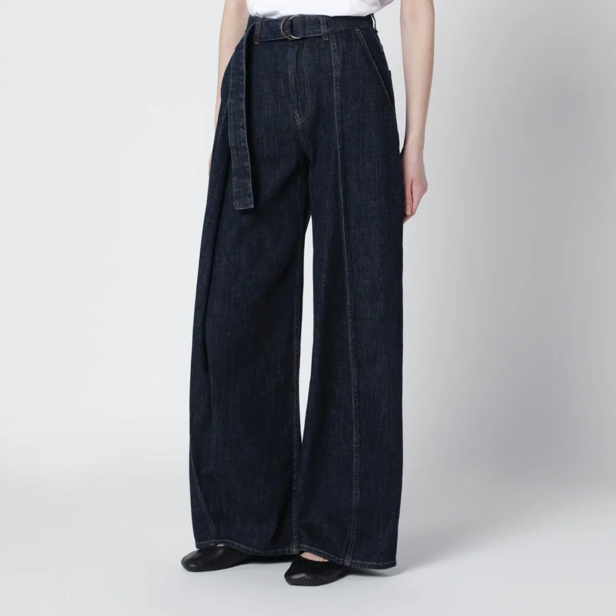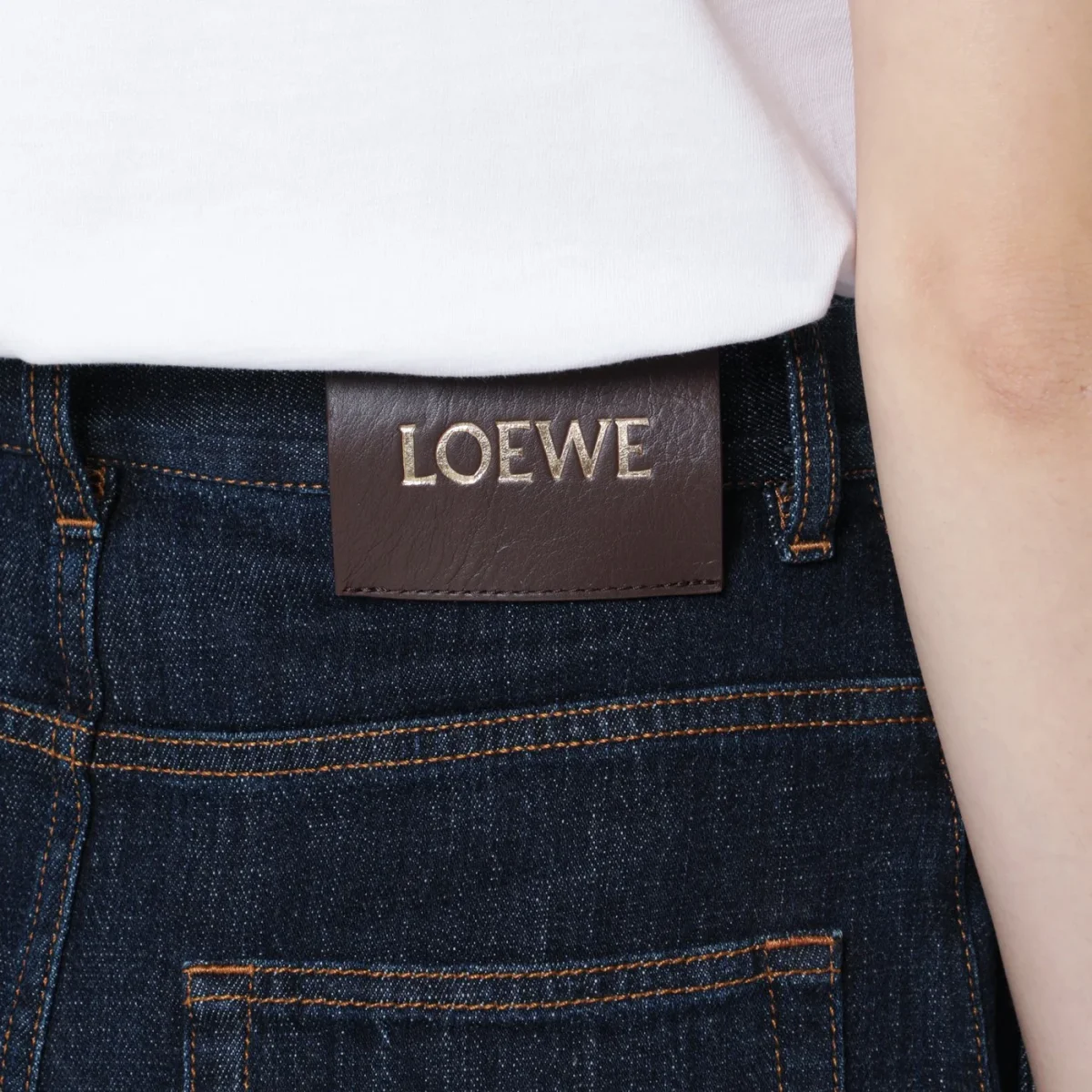 Jeans di Loewe in denim di cotone blu indaco• Cintura regolabile con anello a D con logo inciso• Pieghe sul davanti• Vestibilità regolare• Lunghezza regolare• Vita media• Gamba dritta• Chiusura frontale• Due tasche a filetto laterali• Due tasche posteriori applicate• Patch logo posteriore• Cuciture a contrasto
