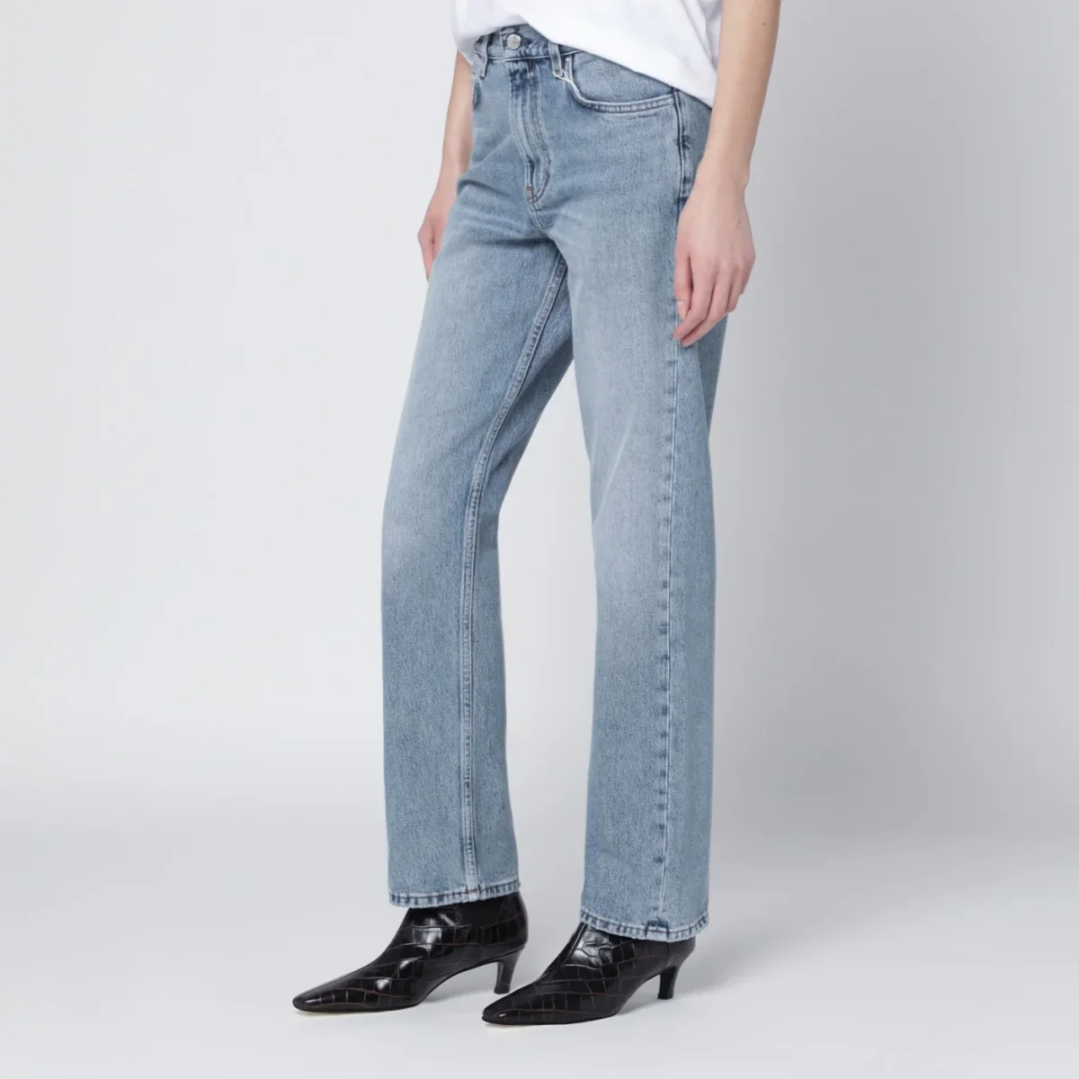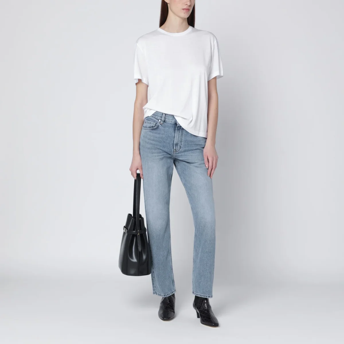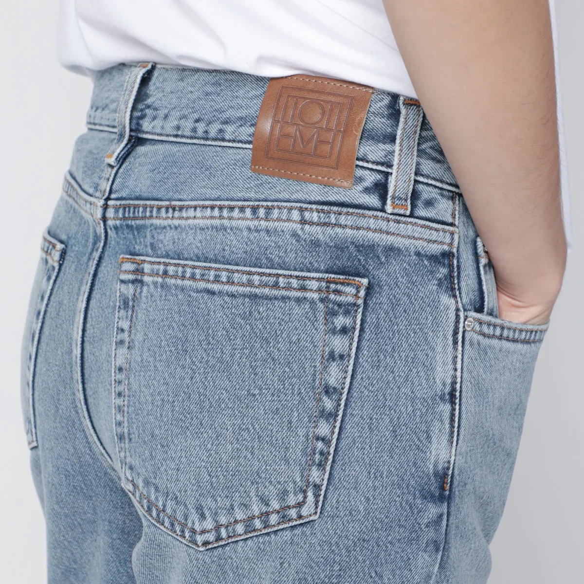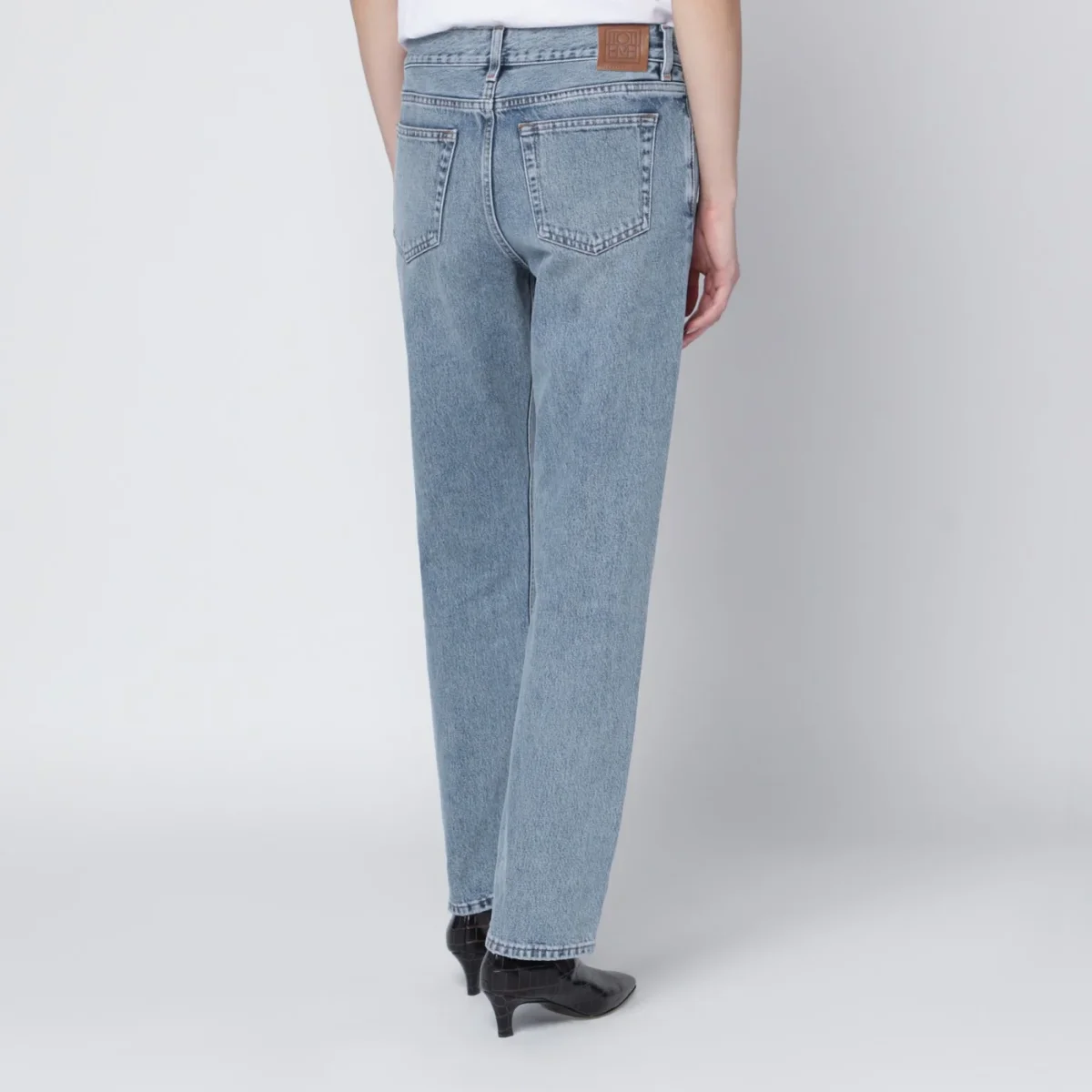 Jeans di TOTEME in denim di cotone organico effetto slavato, caratterizzato da chiusura frontale con zip e bottone, passanti in vita, cinque tasche classiche e patch logo posteriore.