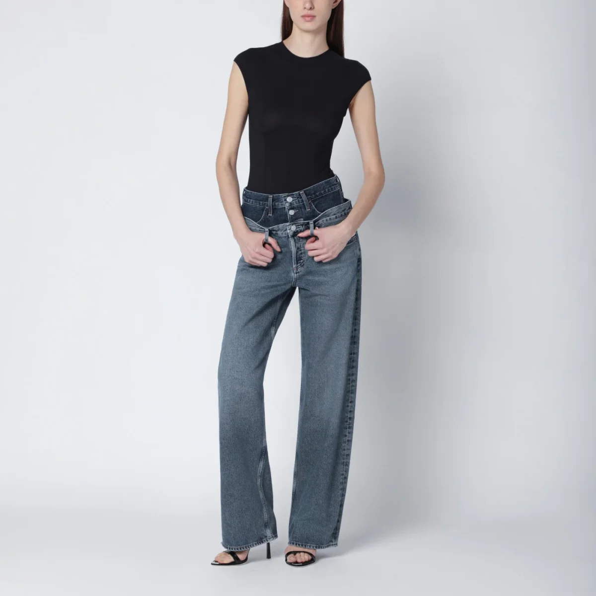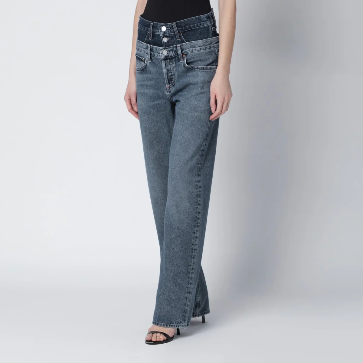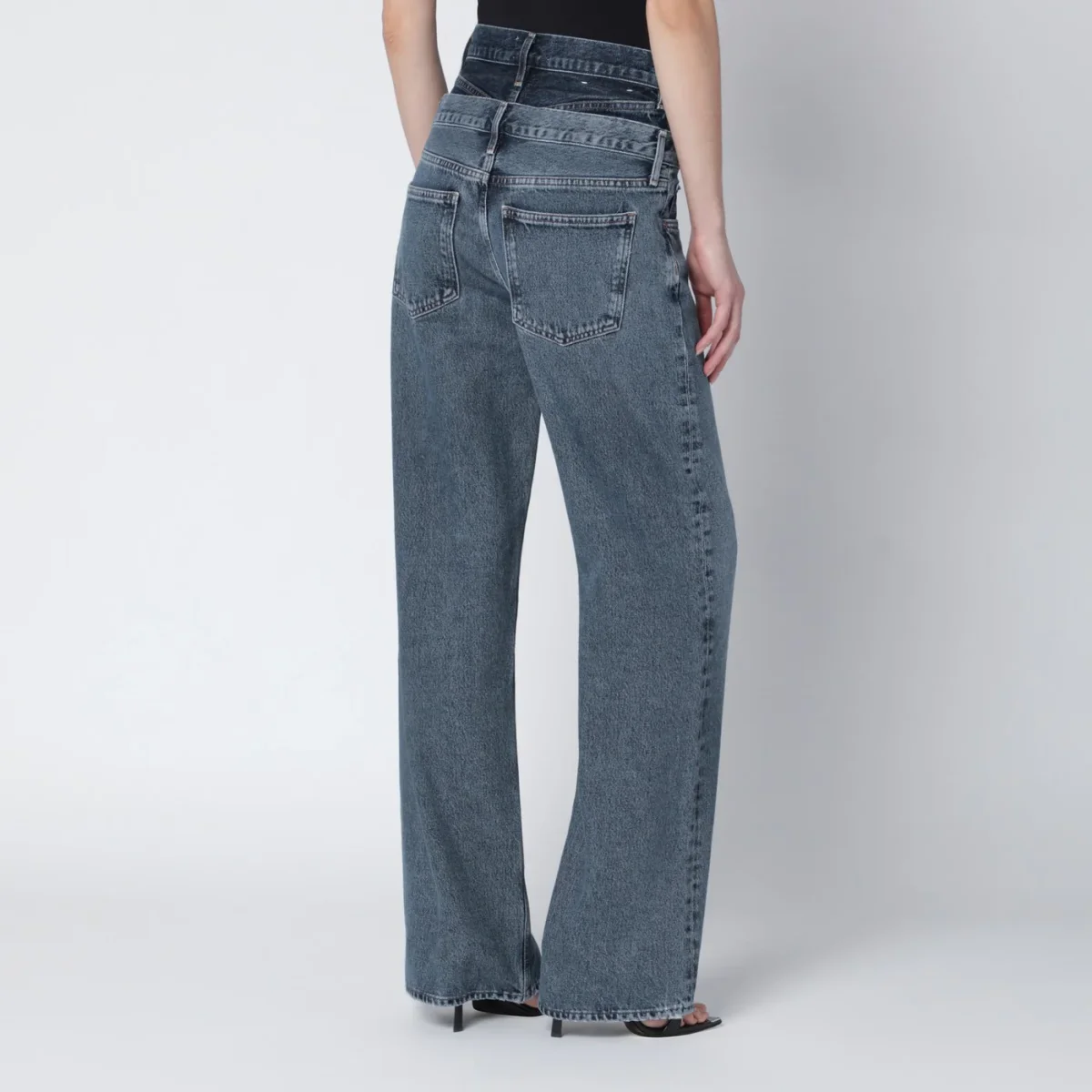 Jeans di AGOLDE in denim di cotone rigenerato rigido non elasticizzato bicolore indaco chiaro e indaco scuro