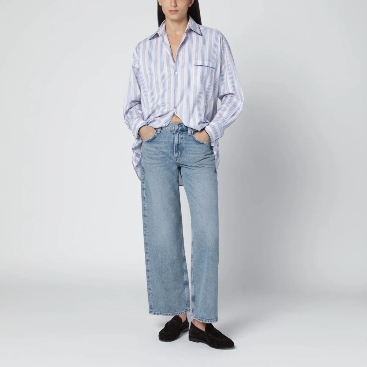 Jeans dritto di Citizens of Humanity in denim di cotone rigenerato rigido non elasticizzato blu indaco medio Bijou• silhouette rilassata• chiusura frontale con zip e bottone• cinque tasche classiche• passanti in vita• patch logo sul retro