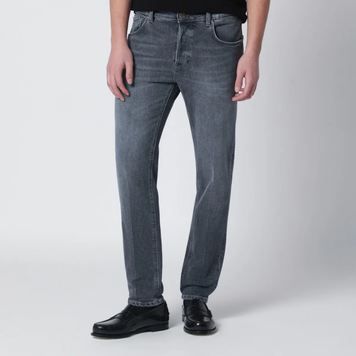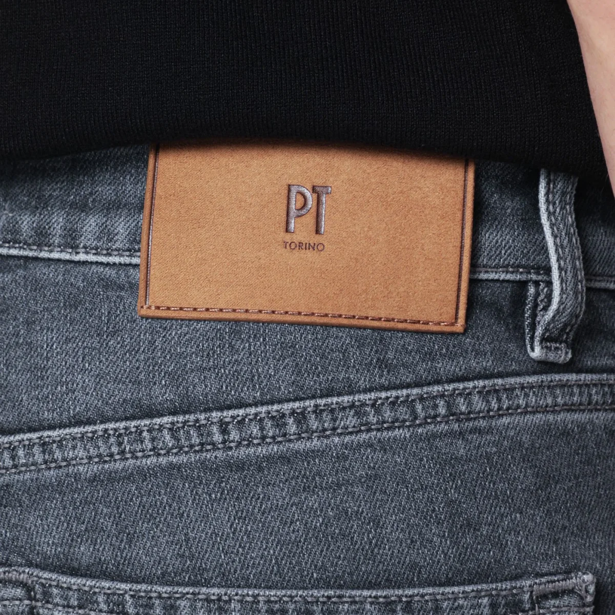 Jeans di PT Torino in denim di cotone grigio effetto leggermente slavato• chiusura frontale con zip e bottone• passanti in vita• cinque tasche classiche• patch logo posteriore